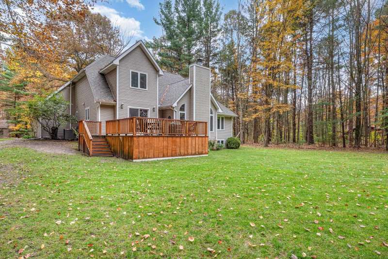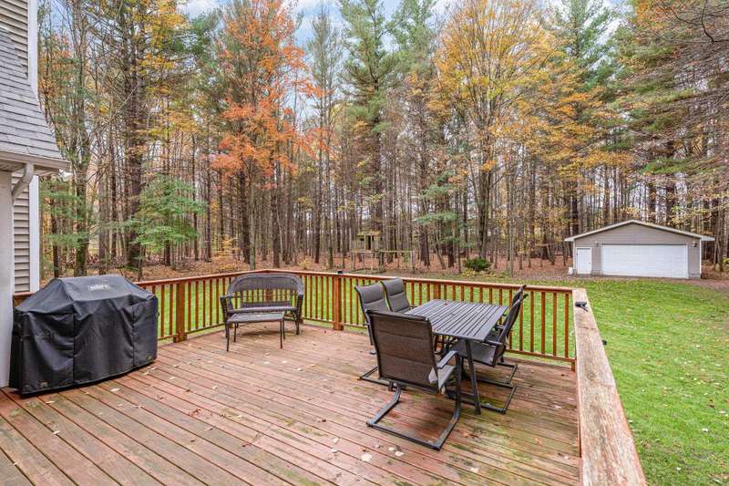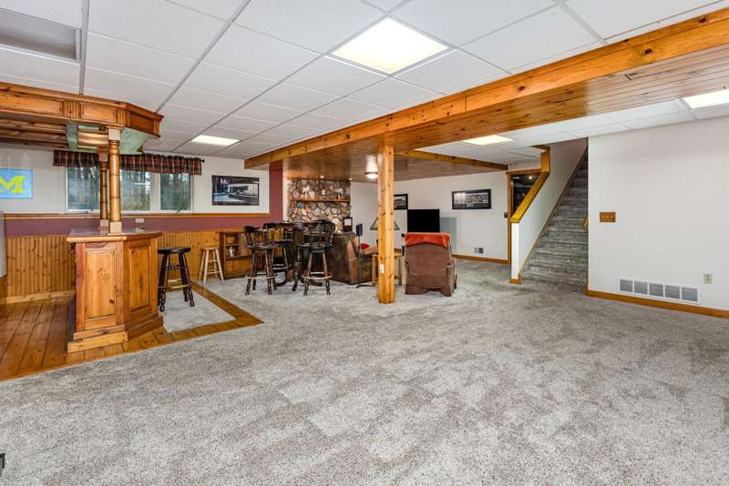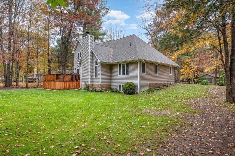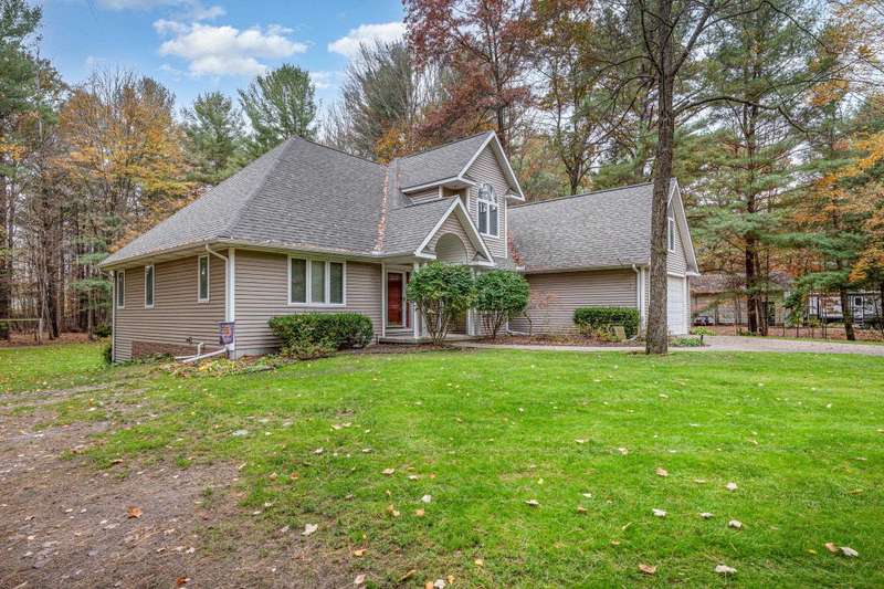 2 STORY HOME nestled in Lincoln Estates subdivision in Meridian Schools. 3+ bedrooms and 2 1/2 bath .Great Room has a fireplace. The home has a New roof , New furnace and New central air all in 2025. Basement family room has 2 egress windows , a fireplace and a unique bar. Home has attached garage and a extra detached garage that is insulated and heated.1 Acre of wooded property and city water. Sprinkler system also.
