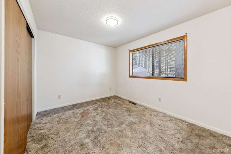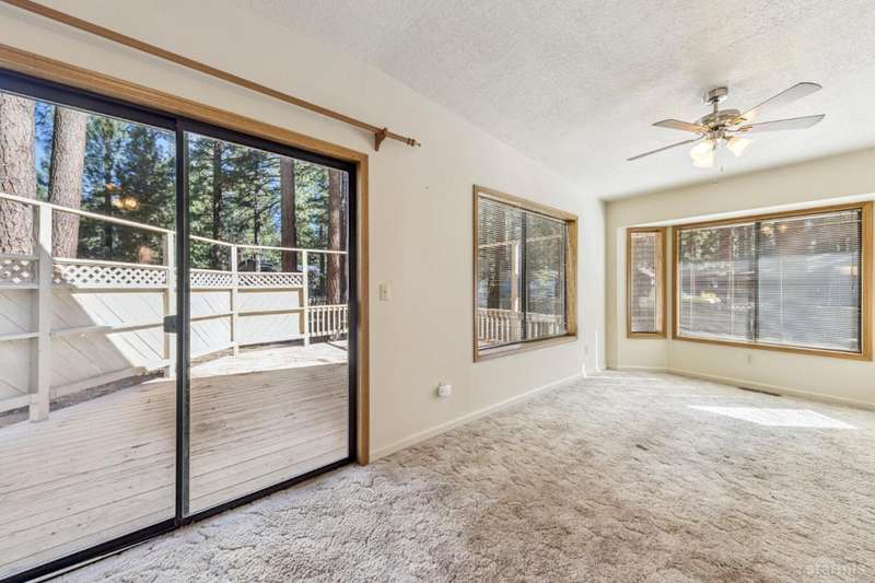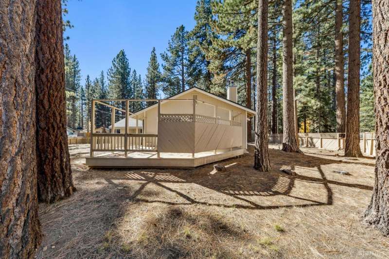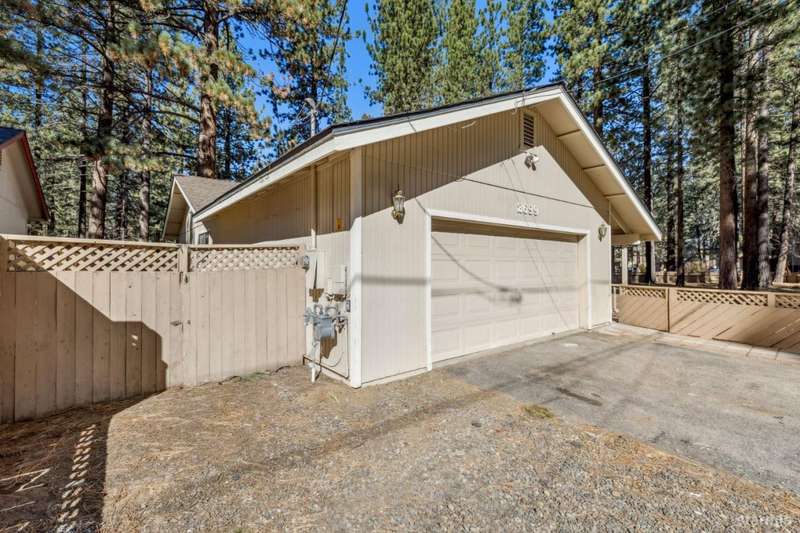 Single-level home positioned on an impressive 13,068 square foot corner lot. This three-bedroom, two-bathroom home has features a spacious living area with vaulted ceilings, a gas fireplace, and plenty of natural lighting.The living area leads to a spacious side deck ideal for outdoor entertaining and relaxation. The kitchen is equipped with a stainless steel gas range, oak cabinetry, and a bright dining nook that captures abundant morning sunlight.The primary bedroom has its own en-suite bathroom, ensuring comfort and convenience. This home features a brand new composition roof, providing peace of mind for years to come.Additional highlights include an attached two-car garage complete with storage shelving and automatic garage door opener. The expansive, sun-drenched lot presents endless possibilities for outdoor activities, gardening, or future expansion.Location advantages abound with convenient access to local shopping, pristine lake activities, and world-class skiing at Heavenly Resort. This rare corner lot property combines the tranquility of generous outdoor space with the convenience of central location, making it an exceptional opportunity for those seeking both privacy and accessibility in the beautiful Lake Tahoe area.
