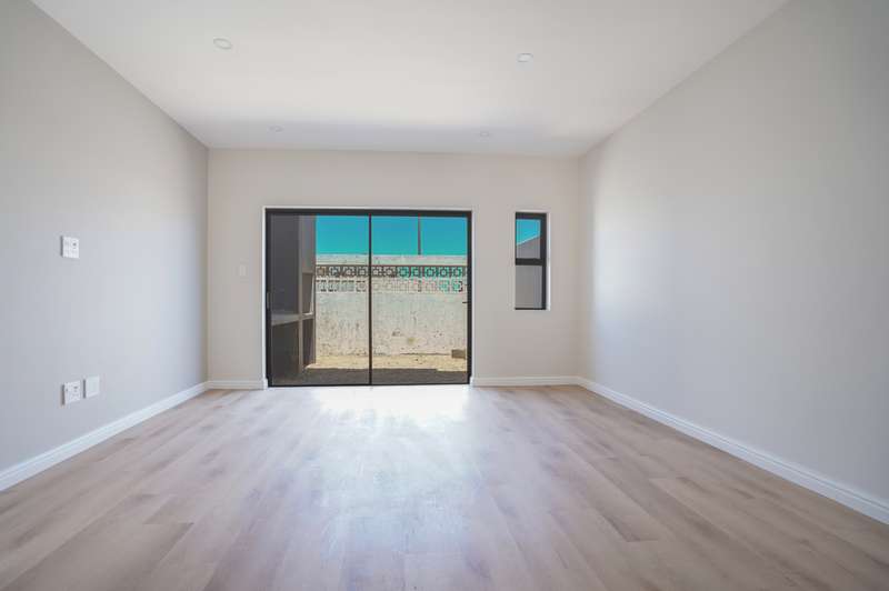*NOTE No Transfer Costs!! No Bond Costs!! Phase 2 now launching! *Bigger plots in the 2nd phase with an added Study nook Discover modern living in this charming 2-bedroom, 2-bathroom home nestled within a secure estate with biometric access for ultimate peace of mind. Step into an open-concept design, where the kitchen, dining, and living areas flow seamlessly—perfect for effortless entertaining and family gatherings. Extend your living space outdoors onto a spacious patio with a built-in braai, ideal for alfresco dining and relaxing in a serene setting. The main bedroom boasts a private ensuite bathroom, ensuring comfort and convenience, while the second bedroom offers generous space for family or guests. A secure garage provides both parking and additional storage. There is also a dedicated parking bay Set within the secure, 24-hour patrolled Sandown enclave, this property is ideally located close to key amenities such as Sandown Retail Centre, Generations, Parklands College, Table Bay Mall, and is also just a short drive from Bloubergstrand Beach and Eden on The Bay. Wine enthusiasts will appreciate being just 20 minutes away from the renowned Durbanville wine route. Tailor your home to match your unique style. From flooring and countertops to cabinetry and fixtures, create a space that truly reflects your vision. Experience safety, style, and convenience—all in one exceptional home. Book your viewing today!