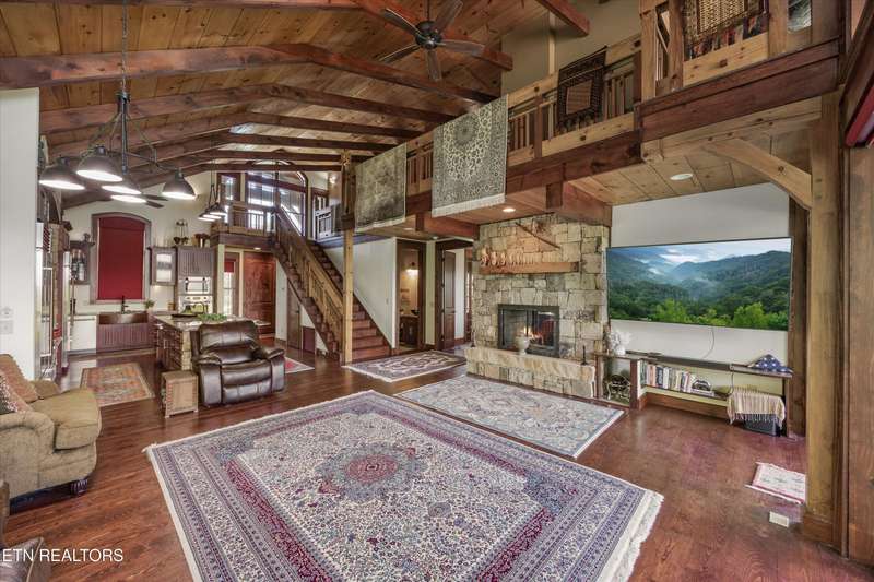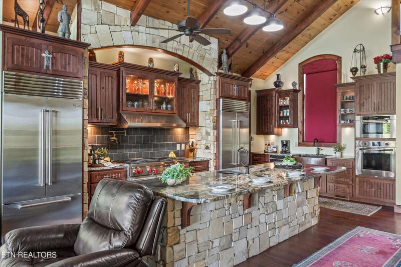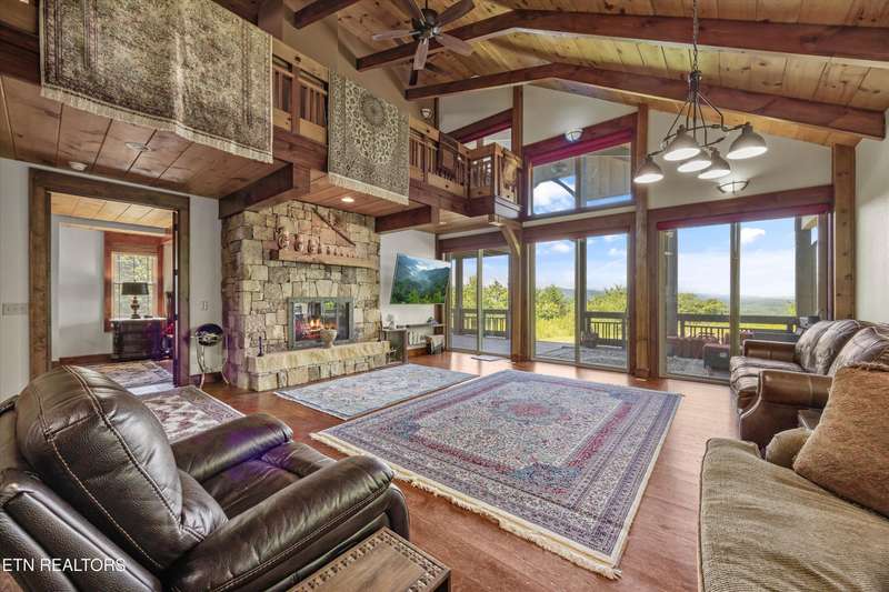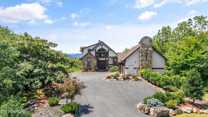 Unprecedented Opportunity - Nearly 10 Acres with Panoramic Mountain Views - THE largest lot in The Summit! Located in the prestigious and highly sought-after subdivision of The Summit in Sevierville, TN, this custom-built luxury mountain estate sits on an exceptional 9.93-acre parcel—the largest privately owned lots in the community. With breathtaking, unobstructed Smoky Mountain views, this property offers a rare blend of privacy, elegance, and flexibility in one of East Tennessee's most exclusive neighborhoods. Lightly lived in as a permanent residence and later as a second home, this immaculate estate boasts top-of-the-line appliances, exquisite craftsmanship, and luxury finishes throughout. The main-level master suite includes an expensive Isokern see-thru stone gas & woodburning fireplace into the living room, creating a warm and refined ambiance. The master bath features slate flooring, a walk-in slate shower, double sinks, a gorgeous copper soaking tub, and a walk-in closet that connects directly to the laundry room, which also has exterior access near the front door for added functionality. The chef's kitchen includes two refrigerators, two dishwashers, a built-in microwave, built-in oven, an electric oven underneath a gas cooktop with a pot filler, and an oversized walk-in pantry offering plenty of storage. A breakfast bar that could seat 4 to 6 people comfortably. Upstairs includes two additional bedrooms and a full bathroom. All bathrooms feature natural slate flooring. A top-of-the-line gym, located within the spacious 3-car garage, features commercial-grade equipment and is ready for immediate use. In addition to the garage, the property offers ample parking space in the driveway, ensuring plenty of room for future guests, family, or renters. This home is being offered fully turn-key, with furnishings and gym equipment welcome to stay, making for an effortless transition into your dream home or income-producing investment. One of the most unique aspects of this property is that it comes with approved plans for a 1,200 sq ft guest house—a perfect way to take advantage of the sweeping views, add rental income potential, or create a separate space for guests or extended family. Due to the strategic layout of the lot, you'll also benefit from no future neighbors, offering an additional layer of privacy and exclusivity. The back porch and expansive backyard offer endless possibilities for outdoor living, entertaining, and future development. Whether you envision a pool, firepit lounge area, hot tub, or additional structures, the canvas is ready. Surrounded by high-performing short-term rentals, this property is STR-eligible and positioned for excellent rental potential. Just minutes to Dollywood, The Island in Pigeon Forge, Tanger Outlets, WonderWorks, Titanic Museum, Downtown Sevierville, and the entrance to the Great Smoky Mountains National Park, you'll enjoy the perfect blend of peace and proximity. This is truly a one-of-a-kind opportunity to own a legacy estate in one of the Smoky Mountains' most luxurious communities. Schedule your private showing today and experience the full potential of this remarkable property. OFFERING FREE APPRAISAL OR DISCOUNTED RATE WITH PREFERRED LENDER