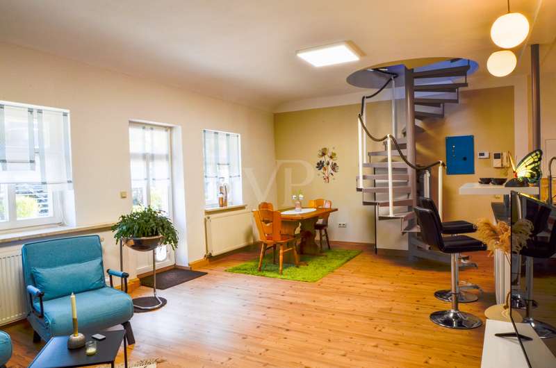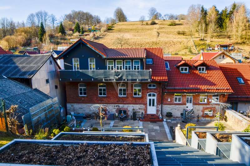 This unique multi-family house property from 1910, in solid solid construction, is located in the idyllic location of Altendambach, a district of Schleusingen. On a generous plot of 1,716 m², the property offers a total of 390 m² of living space, divided into three individually designed residential units. The attractive location of the property is complemented by a separate garden area of 1,845 m², which also serves as an access area to the property. The property boasts a variety of high-quality features that offer a comfortable and modern lifestyle. Each residential unit is equipped with its own gas boiler, which was renewed in 2020 and 2021, thus ensuring reliable and efficient heating. Some of the residential units also have pleasant underfloor heating. The residential units in detail: Apartment unit 1: This charming apartment offers approx. 70 m² of living space and is ideal for singles or couples. Apartment unit 2: With approx. 105 m², this apartment offers generous space for families or shared flats. Apartment 3: With an impressive 215 m² of living space, this apartment is a real highlight. It has a spacious balcony and a fully developed attic, which was extensively renovated in 2015. Here you will find the perfect space for discerning tastes. The plot is laid out like a terrace, so that each residential unit can enjoy its own private terrace. These details create a special feel-good atmosphere, while at the same time creating a harmonious connection between indoor and outdoor areas. Further features: All windows are fitted with mirror glazing and thermal insulation glass, which ensures both excellent insulation and a high level of soundproofing. The entire building is efficiently heated with gas and electricity. Each residential unit already has a high-quality fitted kitchen, making the apartments ready for immediate occupancy. Two practical cellar compartments offer additional storage space for all residential units and contribute to good household organization. The parking space is only approx. 20 meters from the apartment building and provides additional convenience. This property is ideal both for investors looking for a high-yield investment and for families who want to combine the charm and tranquillity of a rural setting with generous living space. Take the opportunity to acquire a historic building with modern comforts and shape your future in one of the most beautiful locations in the Altendambach district!