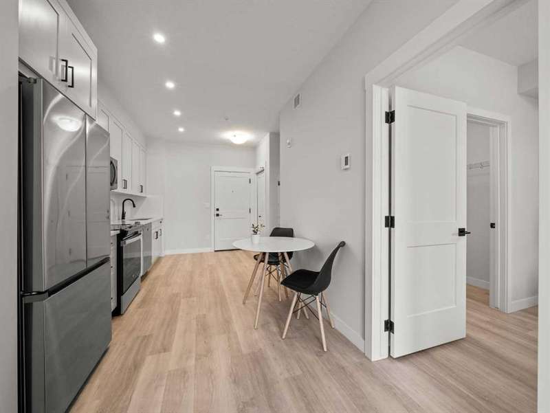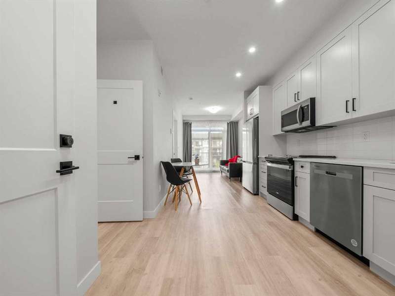Set in the heart of Southeast Calgary’s award-winning community of Seton, this stylish 1-bedroom condo puts everything you need just steps from your door. From the South Health Campus and Canada’s largest YMCA to grocery stores, restaurants, coffee shops, and entertainment, you’ll love being surrounded by the best of city living without sacrificing comfort. With easy access to transit, Stoney Trail, and Deerfoot Trail, getting anywhere in Calgary is a breeze. Inside, you’ll find a bright, open-concept layout with sleek LVP flooring throughout, a modern kitchen with upgraded stainless steel appliances, tile backsplash, and plenty of cabinet space. The kitchen flows into the dining area and the living room with a large sliding door, leading onto a spacious patio with a nice view and a gas line for a barbecue. The bedroom includes a walk-through closet with a stackable washer and dryer already installed, which leads directly into a beautifully appointed 4-piece en-suite. This pet-friendly building is designed with lifestyle in mind, offering on-site dog wash stations and even a dog park for your furry friends. You’ll also enjoy the convenience of an outdoor parking stall and additional storage in the parkade. Whether you’re a first-time buyer, downsizer, or investor, this home blends style, function, and community living in one of Calgary’s most vibrant neighbourhoods. Don’t miss your chance to make Seton West your new home - book your showing today!