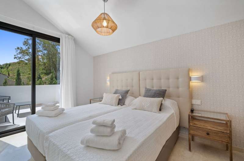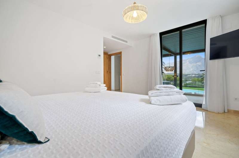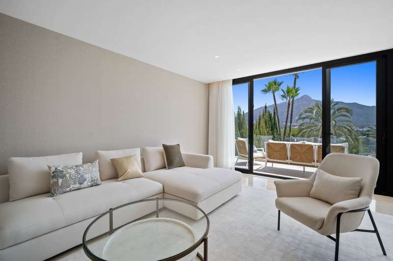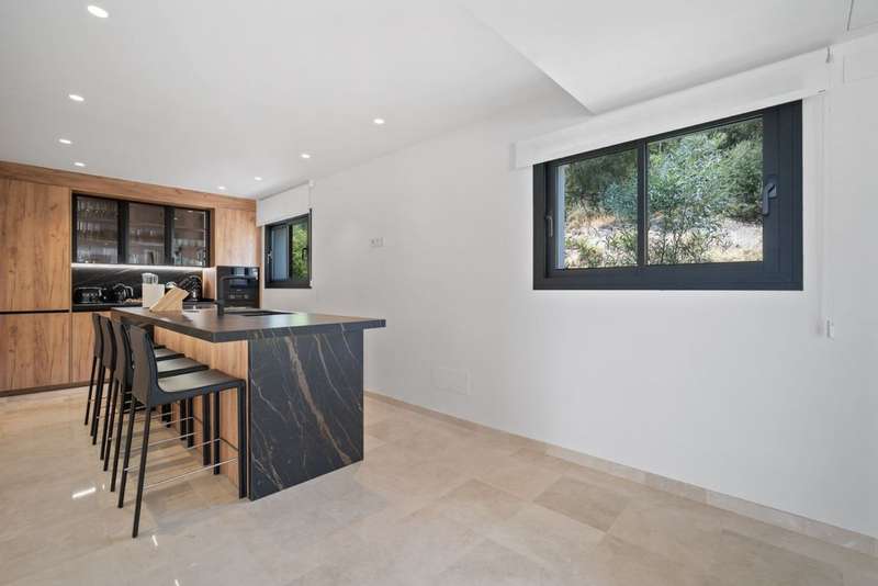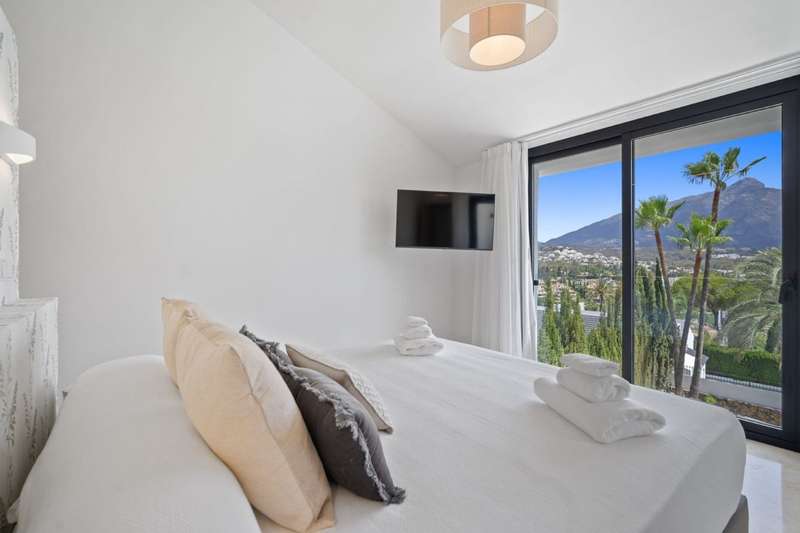 Step into the heart of the Costa del Sol lifestyle with this extraordinary newly refurbished villa, nestled in the prestigious and tranquil enclave of Nueva Andalucía. Showcasing the perfect blend of contemporary elegance and timeless comfort, this 5-bedroom residence is a true sanctuary designed for both vibrant entertaining and everyday relaxation. Space, Style & Sunlight Across Three Immaculate Levels Thoughtfully laid out, the villa spans three levels of refined living: On the main floor, you’ll find a spacious open-plan living area with multiple cozy seating zones and a state-of-the-art kitchen complete with central island, wine cooler, and premium appliances. The seamless flow takes you to a sunny, south-facing covered terrace, ideal for year-round al fresco dining, and into a beautifully landscaped garden with a private pool and jacuzzi. This level also includes a comfortable guest suite with en-suite bathroom, perfect for visitors seeking privacy. The upper level is home to
