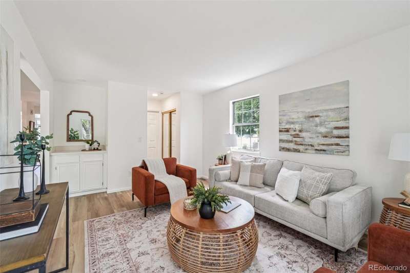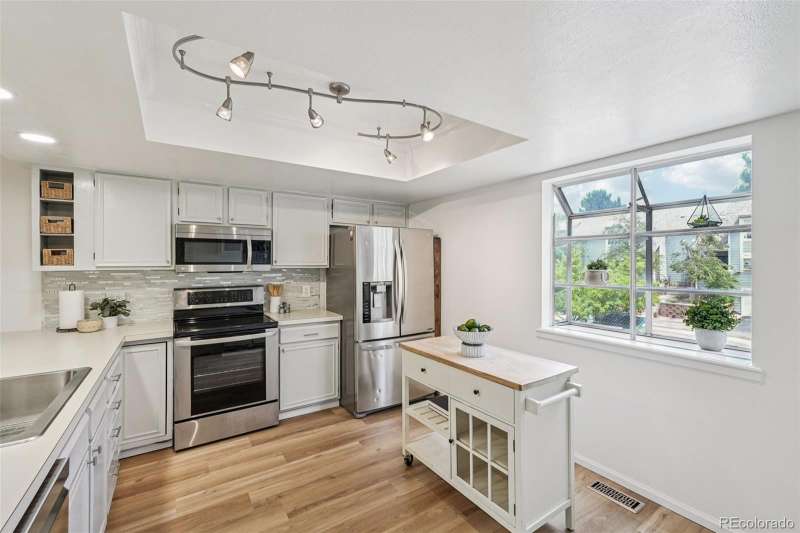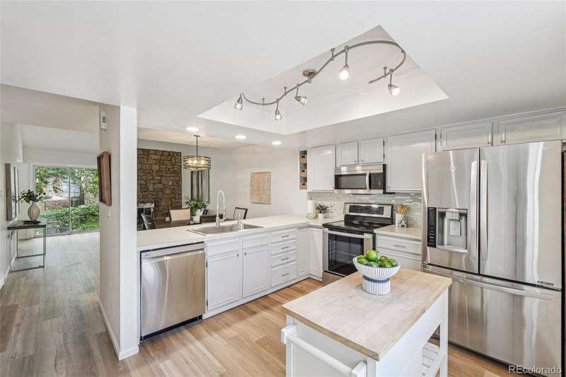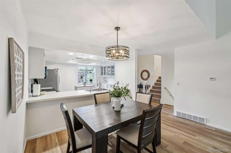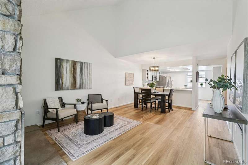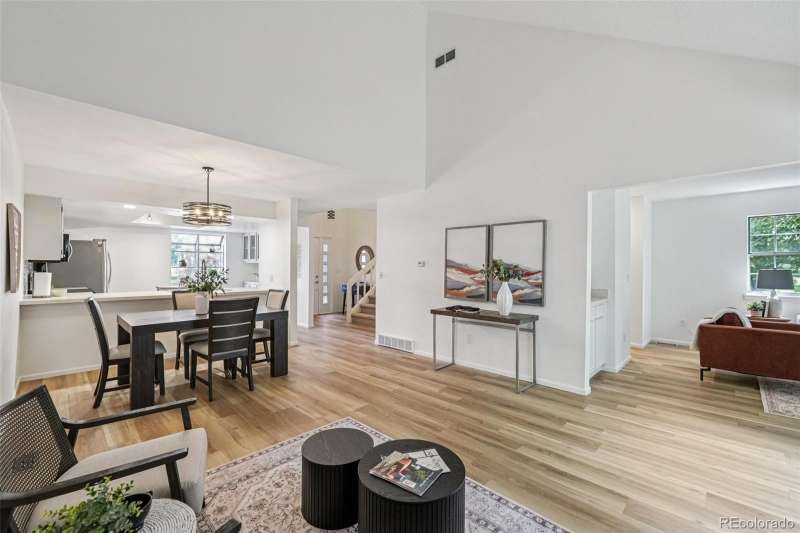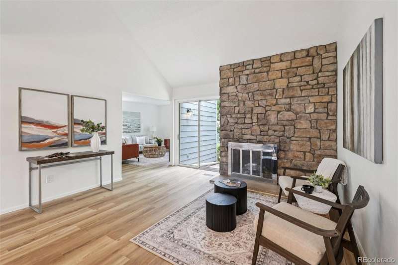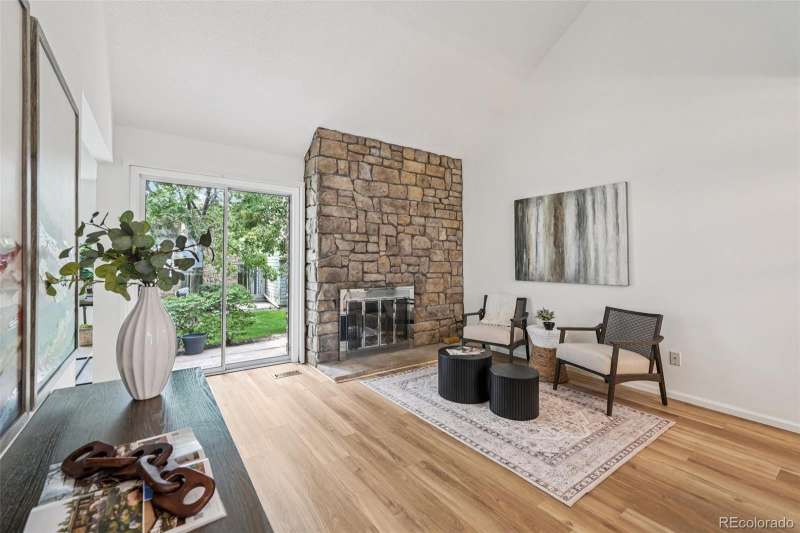 HAVE YOU BEEN WAITING FOR AN INCREDIBLE DEAL? YOUR TIME HAS COME TO MAKE A MOVE INTO YOUR NEW HOME IN THE DESIRABLE COMMUNITY OF CHIMNEY HILL AT HEATHER RIDGE! SELLER SAYS SELL! AND HAS REDUCED PRICE OVER $30K FROM ORIGINAL LIST PRICE! This gorgeous 3 bed/2 bath townhome has been recently remodeled providing functional kitchen and bathroom updates, new Coretec luxury vinyl flooring, new carpeting, new lighting fixtures and fresh new interior paint! The living spaces are bright and airy with vaulted ceilings and an abundance of natural light! The floorplan is open concept - the inviting living room, with its wood-burning fireplace, flows seamlessly to the large kitchen and dining spaces as well as into the adjacent family room. On the upper level you will find the primary bedroom with a large walk-in closet, a generously-sized guest bedroom, linen closet, and a full bathroom with newly installed double vanity, mirror, and lighting. The lower level offers tremendous storage, a flex room that could be used as a family room, exercise room or home office, as well as the laundry area with washer, dryer and plumbing stubbed for a 3rd bathroom. The large bedroom suite on the main floor is non-conforming in that it needs a door installed, but easy to do! Enjoy quiet moments on the patio with views overlooking the greenspace. You will appreciate the convenience of an oversized attached garage w/ built-in cabinetry. Residents of Chimney Hill at Heather Ridge enjoy beautiful surroundings, a community pool, abundant open space with a trail connecting to Utah Park and easy access to the Cherry Creek trail leading to the state park. This home is centrally located in the highly rated Cherry Creek school district, just moments from I-225, Iliff Light Rail Station, Aurora hospitals, shops, restaurants and parks! WELCOME HOME!!!