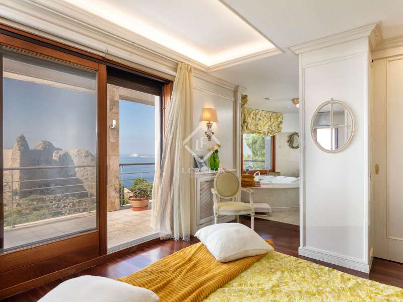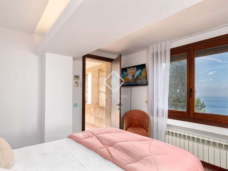 This unique villa stands in the privileged Bay of Roses, located directly opposite the Castillo de la Trinidad, an incomparable enclave offering panoramic views of the Mediterranean Sea and the iconic monument, creating a setting of absolute distinction. The recently renovated, multi-level property offers 390 m² of living space on a 1,487 m² plot . From the private access with automatic gates and parking for several vehicles, a lift connects all floors, ensuring comfort and accessibility. Inside, large windows frame the seascape and fill each room with natural light. The day area consists of a stately living room with a fireplace and direct access to the terrace, along with a fully equipped open kitchen and an elegant dining room. The villa has four double bedroom suites, all with private bathroom and terraces offering stunning views of the sea and the castle. The master suite, located on the upper floor , includes a dressing room, a private terrace, and a mezzanine space ideal for an study or reading corner. The exterior is a true Mediterranean oasis: a 4x8m infinity pool facing the sea, various terraces on different levels—including a covered one, perfect for evenings with friends—, a chill-out area, a summer kitchen with a barbecue, and a landscaped garden with an ornamental fountain. Its amenities include central heating, air conditioning, electric shutters, double-glazed windows, an advanced alarm system, and solar panels, making it a property that is as luxurious as it is efficient. With a valid tourist license, this villa represents not only an exclusive lifestyle in one of the most coveted locations on the Costa Brava, but also an excellent investment opportunity.