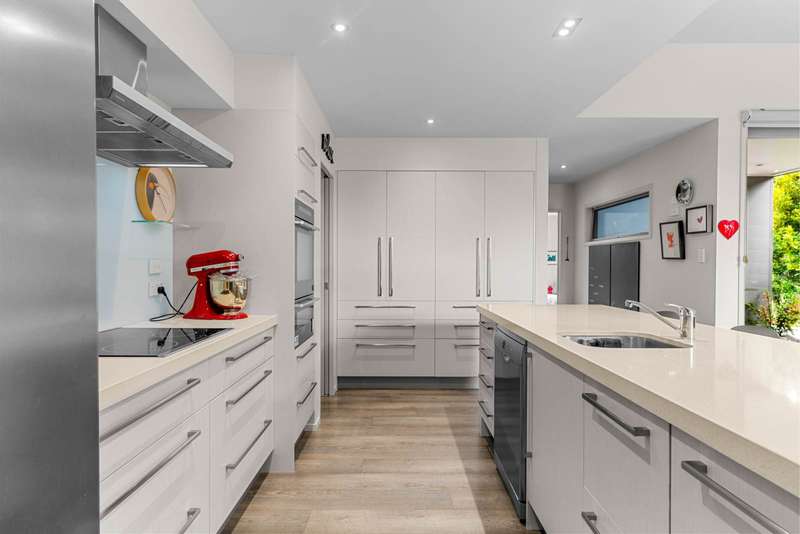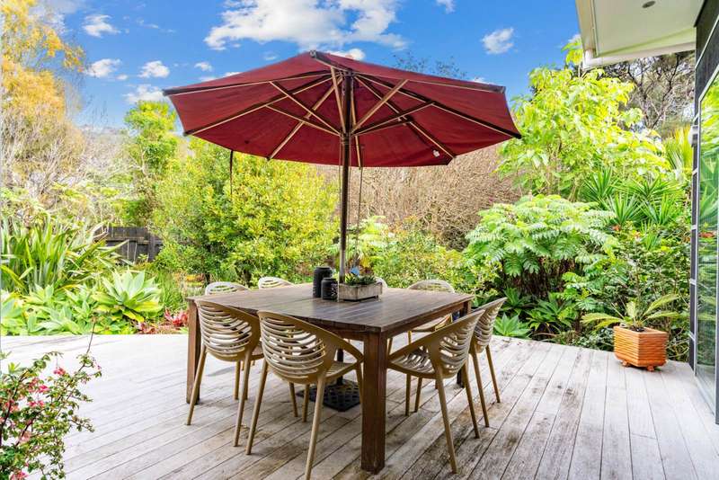 Discover the epitome of modern, single-level living in this beautifully designed home—where thoughtful architecture meets serene, landscaped grounds to create the ultimate lifestyle retreat. Step inside to experience the open-plan living bathed in natural light, thanks to soaring high studs and seamless indoor-outdoor flow. Entertain with ease from the contemporary kitchen, complete with a butler’s pantry, while family and friends gather around the spacious living area or spill out onto the expansive deck or gather around the wood fire on winter nights. The master suite is a true haven—tucked away for privacy, featuring a walk-in robe, a large ensuite, and direct access to the sun-drenched semi covered deck and lush gardens beyond. Two additional bedrooms are cleverly positioned at the opposite end of the home, offering peace and privacy for all. A dedicated walk-through study, connected to ultra-fast fibre, makes working from home a breeze. Step outside and follow the charming boardwalk through an abundance of fruit trees and beautifully landscaped grounds, leading you to a delightful potting or garden shed—perfect for green thumbs. Car enthusiasts and hosts will appreciate the high-stud, double garage with separate guest accommodation and an additional bathroom—ideal for extended family, friends, or potential Airbnb guests. Sustainability is at the heart of this property, with 24 German solar panels and a 10kW Tesla battery ensuring energy efficiency, alongside argon-infused double glazing for year-round comfort. Wake up to birdsong and enjoy the tranquil oasis that surrounds you, all while being centrally located for ultimate convenience. **Key Features:** - 3 spacious bedrooms, including a separate master suite with walk-in robe and ensuite - 1 large family bathroom - Modern, open-plan kitchen with butler’s pantry - Dedicated study with fibre connection - Expansive deck for effortless indoor/outdoor living - Gorgeous, landscaped grounds with fruit trees and boardwalk - Double garage with guest accommodation and ensuite - Sustainable living with solar panels, Tesla battery, and double glazing - Abundant parking for family and guests - Peaceful ambiance with vibrant birdlife A polished, private oasis designed for elegant, effortless living—this is the home where your next chapter begins. **Contact me today to arrange your private viewing and experience this exceptional property for yourself.**