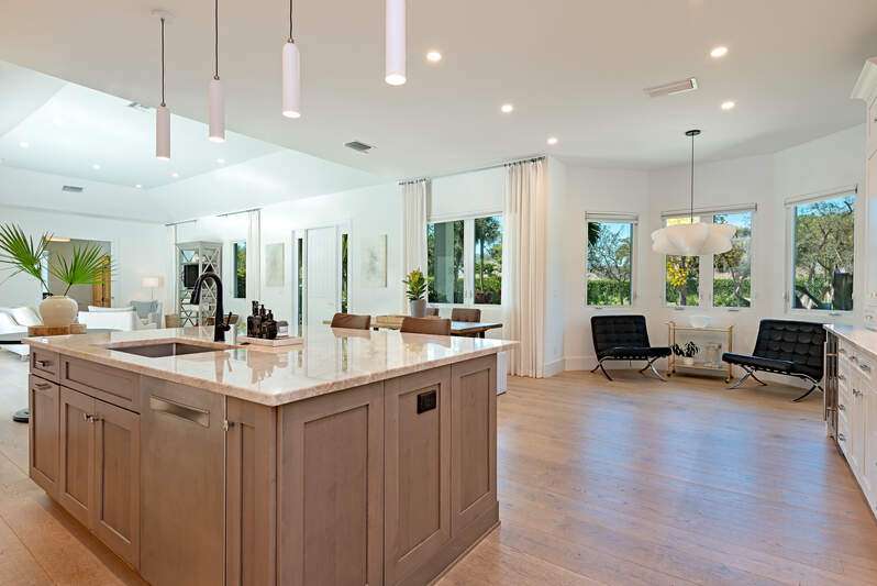 This gorgeous, renovated, single-family pool home in PELICAN BAY offers an exquisite blend of style and comfort. Featuring elegant French oak wood flooring throughout the main living areas, this light and bright residence boasts a well-thought-out floor plan with FOUR bedrooms and THREE custom baths. The beautifully appointed kitchen is complete with a large island and top-of-the-line appliances, making it perfect for both everyday living and entertaining. Nestled on a generous 0.43-ACRE LOT, this home provides ample outdoor space and expansion possibilities. Designed for peace of mind, it is equipped with ALL HURRICANE IMPACT WINDOWS & DOORS, along with a new ROOF 2017. Located in X- Flood Zone! Whether hosting guests or enjoying quiet coastal living, this exceptional home offers the perfect blend of elegance and functionality. As a resident of Pelican Bay, you'll enjoy exclusive access to all its premier amenities, including 2 PRIVATE BEACHFRONT restaurants and bars, attended beach service, kayaks, paddle boards, 18 Har-Tru tennis courts, an advanced fitness center, pickleball coming soon, and scenic nature trails for walking and biking. Perfectly situated near Artis Naples, Waterside Shops, and Mercato, this residence provides unparalleled convenience to world-class shopping, dining, and entertainment options.