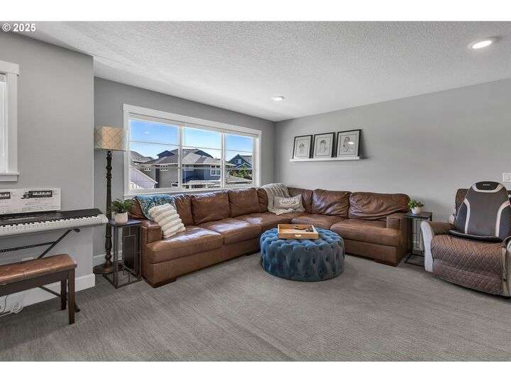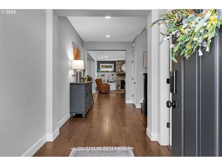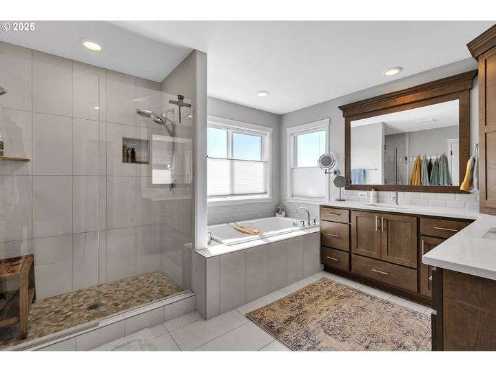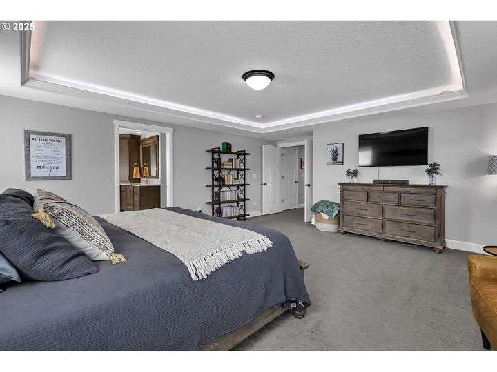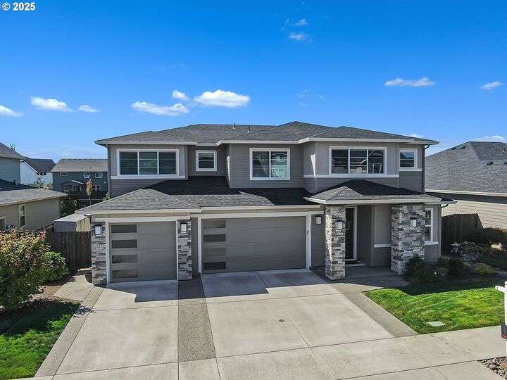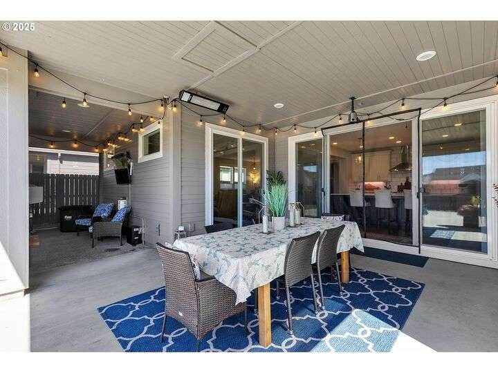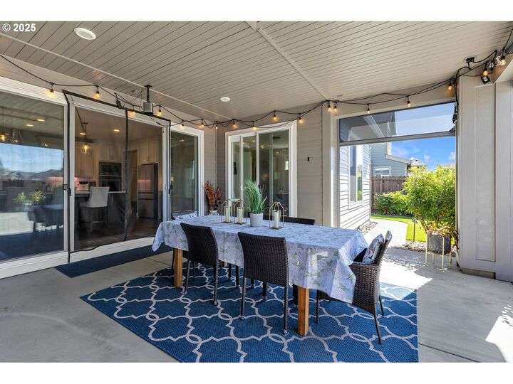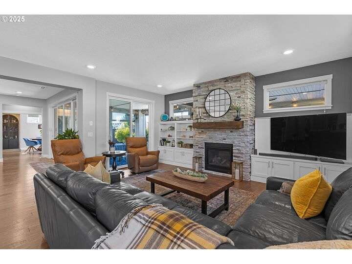 Summer may be winding down, but outdoor entertaining doesn’t have to with this Ridgefield stunner by award-winning builder New Tradition Homes, showcasing over $200,000 in recent upgrades and 600+ sq. ft. of combined covered outdoor living space, you never have to leave home! Designed for year-round enjoyment, the outdoor oasis features attached heaters, retractable sun screens on all sides, outdoor lighting, an attached TV, a flat, artificially turfed yard, raised garden beds, and a sprawling 14x30 sport court with built-in basketball hoop and stadium lighting (could also be a mini pickle ball court)—all perched against a peaceful greenbelt with private gate access connecting to numerous walking trails. Inside, 9-foot ceilings and custom woodwork highlight a thoughtful floor plan with a spacious main-level bedroom with attached full bath, two mud rooms at both entries, a main-floor office and half bath, and a three-car garage decked out with built-in cabinets and a high-tech ceramic floor coating PERFECT for a workout room or prized cars/boats etc. The chef’s kitchen offers double ovens, wine fridge, massive eat-in bar, a nice sized pantry with custom cabinetry and three sliding doors opening to the covered patio. Upstairs includes oversized bedrooms, a bonus room with double doors and beverage bar, and a nicely sized laundry room with sink. The primary suite has room to spread out and a spa-like bath with soaking tub, walk-in shower, and a thoughtfully appointed California Closets walk-in closet offering the perfect start (and finish) to busy days. Added perks include a tankless hot water heater, hot-and-cold exterior spigot, premium window treatments with blackout shades in the primary, and abundant storage. Blending luxury, comfort, and lifestyle, this turnkey home offers upgrades you rarely see at this price point, in one of the most sought after communities.