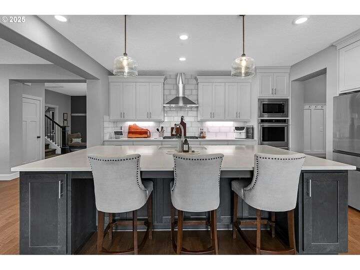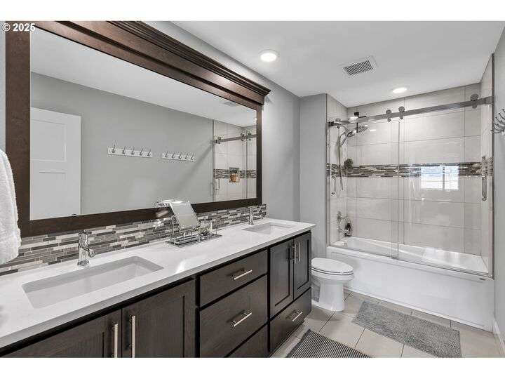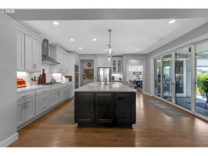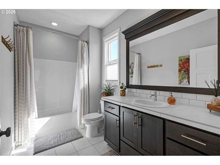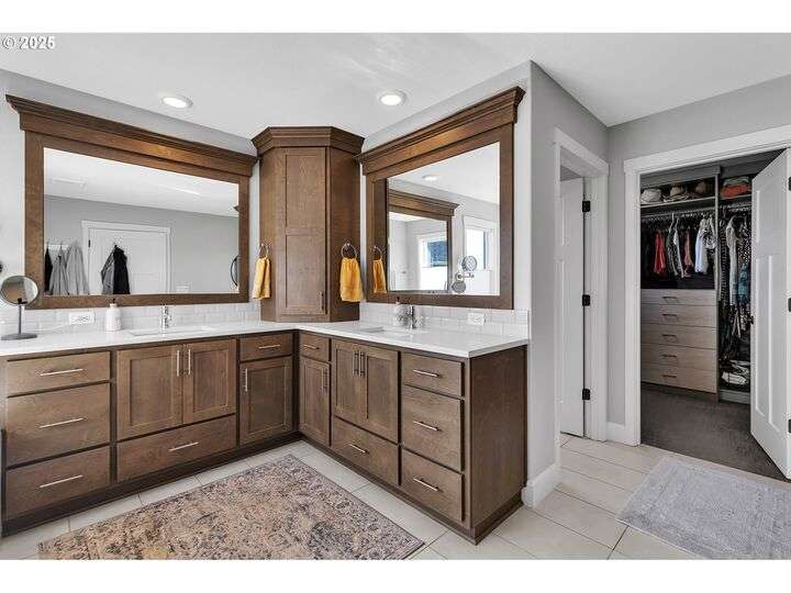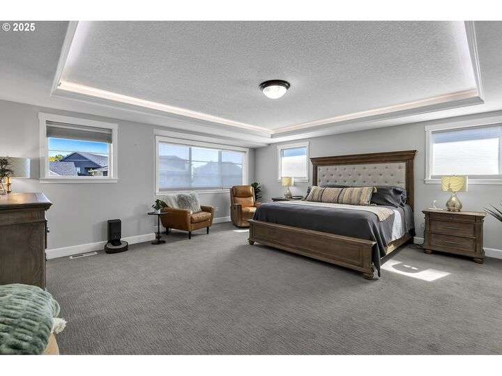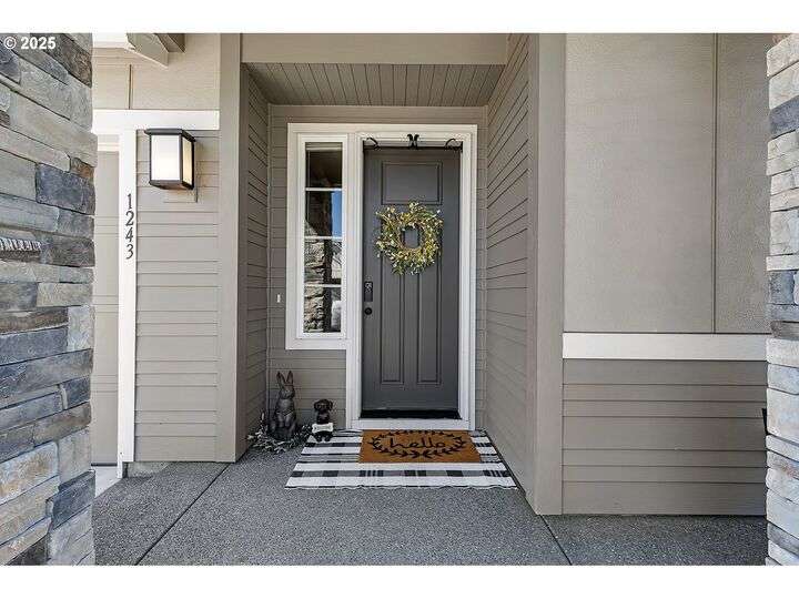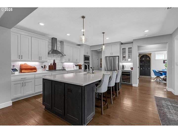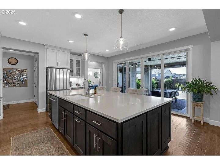 Summer may be winding down, but outdoor entertaining doesn’t have to with this Ridgefield stunner by award-winning builder New Tradition Homes, showcasing over $200,000 in recent upgrades and 600+ sq. ft. of combined covered outdoor living space, you never have to leave home! Designed for year-round enjoyment, the outdoor oasis features attached heaters, retractable sun screens on all sides, outdoor lighting, an attached TV, a flat, artificially turfed yard, raised garden beds, and a sprawling 14x30 sport court with built-in basketball hoop and stadium lighting (could also be a mini pickle ball court)—all perched against a peaceful greenbelt with private gate access connecting to numerous walking trails. Inside, 9-foot ceilings and custom woodwork highlight a thoughtful floor plan with a spacious main-level bedroom with attached full bath, two mud rooms at both entries, a main-floor office and half bath, and a three-car garage decked out with built-in cabinets and a high-tech ceramic floor coating PERFECT for a workout room or prized cars/boats etc. The chef’s kitchen offers double ovens, wine fridge, massive eat-in bar, a nice sized pantry with custom cabinetry and three sliding doors opening to the covered patio. Upstairs includes oversized bedrooms, a bonus room with double doors and beverage bar, and a nicely sized laundry room with sink. The primary suite has room to spread out and a spa-like bath with soaking tub, walk-in shower, and a thoughtfully appointed California Closets walk-in closet offering the perfect start (and finish) to busy days. Added perks include a tankless hot water heater, hot-and-cold exterior spigot, premium window treatments with blackout shades in the primary, and abundant storage. Blending luxury, comfort, and lifestyle, this turnkey home offers upgrades you rarely see at this price point, in one of the most sought after communities.