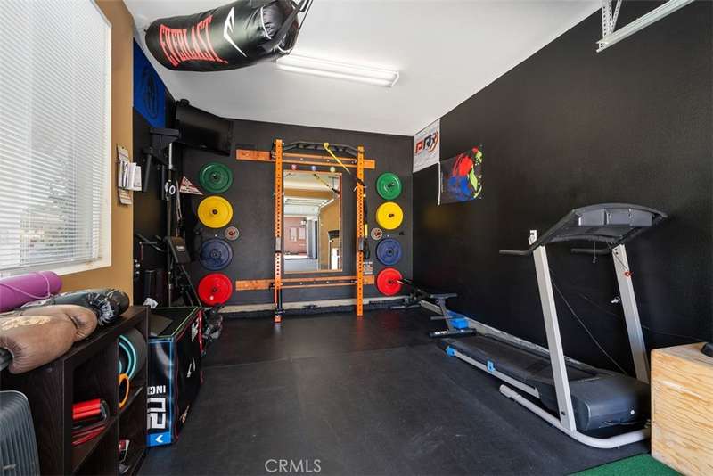 For active families, the connected third-car garage has been masterfully converted into a fully equipped home gym: heavy bag, folding weight rack, over 400 lbs of weights, weight storage, bench, stall mats, and TV--all while retaining space to park a vehicle. Skip the gym commute and enjoy convenient at-home workouts that fit your schedule, promoting health and work-life balance without sacrificing storage or parking. Assumable loan solar panels power the home, delivering significant savings on electricity bills while harnessing clean energy and reducing your carbon footprint--a smart, eco-friendly investment.