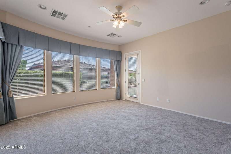 PWelcome home to this 2-bedroom, 2-bathroom home located in an exclusive gated adult community. Offering 2,153 sqft of spacious living, this home also features a versatile den and a 2-car garage. The open floor plan allows for seamless flow throughout the home, perfect for comfortable living. The gorgeous kitchen showcases ample cabinet space and granite countertops. Lovely office space, with plenty of room for storage also! The backyard features a large covered patio and artificial grass. The community boasts top-notch amenities, including a golf course, pickleball court, refreshing pool, relaxing spa, and much more! Ideal for those seeking a serene and active lifestyle in a vibrant neighborhood! Upgrades include: Tile roof replacement Approx.2022. AC / Heating Unit 2021. Upgrades, con New Microwave,RO System.New Water softener system, including filtration for entire house. Exterior Paint. Heavy duty Garage door, Garage motor with super quiet feature 12/24. All Flooring 2025 High grade, Wood tile .Luxury grade padding/Carpet. This Property was occupied by original owner who meticulously maintained home.