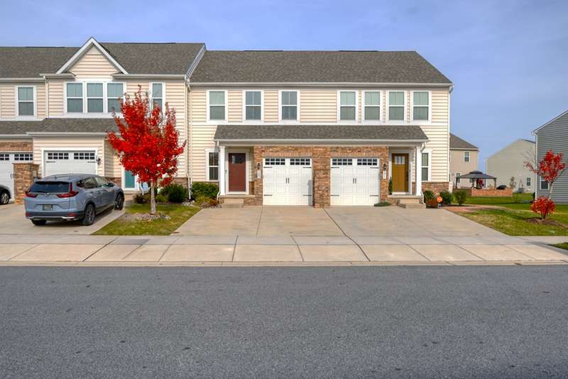 Welcome Home to The Preserve at Deep Creek. This beautiful 3-bedroom, 3.5-bath townhome in The Preserve at Deep Creek truly feels like new — only 5 years young and packed with stylish upgrades. From the moment you pull up, you’ll notice the stone and vinyl exterior, 1-car garage, and extra parking just steps away. Inside, the home welcomes you with warm neutral tones and luxury vinyl plank flooring that flows throughout the open main level. The kitchen, dining and family room are the heart of the home, perfect for gathering and entertaining. You’ll love the soft gray cabinetry, granite countertops, farmhouse sink, stainless steel appliances, and recessed lighting. Step right out onto the Trex deck to enjoy morning coffee or summer evenings under the stars. Upstairs, you’ll find three comfortable bedrooms and two full baths, all finished with matching quartz countertops and modern cabinetry. The primary suite is a peaceful retreat featuring a tray ceiling, his & hers closets, and a spa-like bath with double sinks, a walk-in shower, and a private water closet. Downstairs, the fully finished basement adds even more living space — perfect for a rec room, home gym, or guest area — with a full bath, tub/shower combo, and egress window for natural light. Living in The Preserve at Deep Creek means enjoying the good life — two clubhouses, fitness centers, swimming pools, dog park, walking trails, and basketball courts — plus low-maintenance living that gives you more time to do what you love. Additional perks include energy-efficient utilities, forced air heating, and a tankless on-demand hot water heater. If you’ve been looking for a modern, move-in-ready home in Middletown, DE, with great community amenities and easy access to everything — this is the one.
