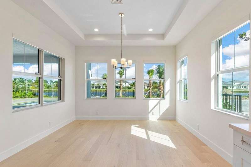Breathtaking lakefront Toll Brothers home in the private gated community Watermark at Avenir! This 4 bedroom + an office 3.5 bath home features over 500k in upgrades! The large open floor plan with loads of natural light opens up to your private backyard oasis with an expansive backyard and custom heated pool and spa. The office as well as the huge master bedroom are on the first floor with a luxury bathroom featuring frameless glass shower with rainfall features and elegant free-standing tub and oversized walk-in closets. Gourmet kitchen features a large center island with breakfast bar, SS appliances, natural gas for cooking, plenty of counter and cabinet space and huge pantry. EV charger outlet in the 3 car garage. Impact windows throughout.