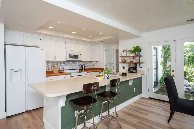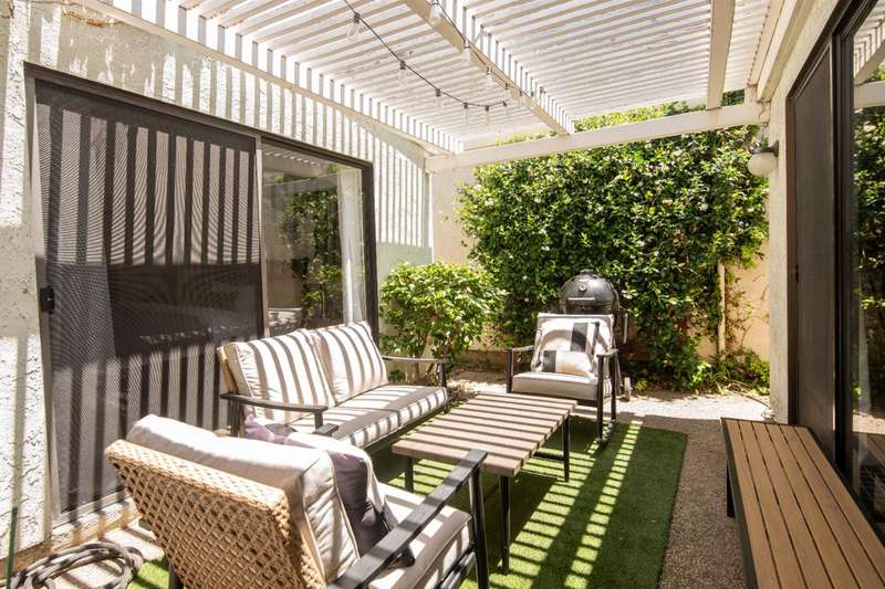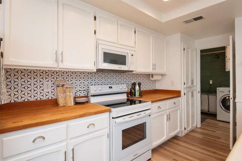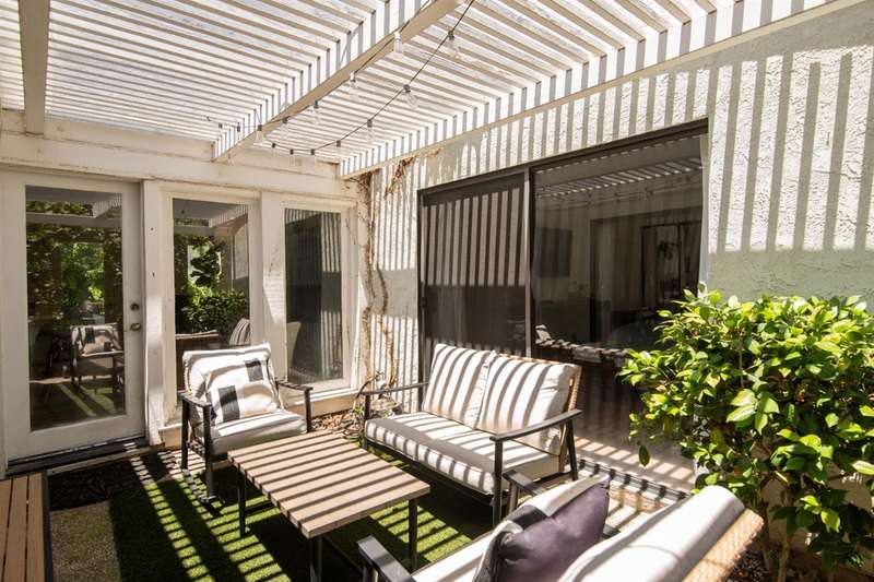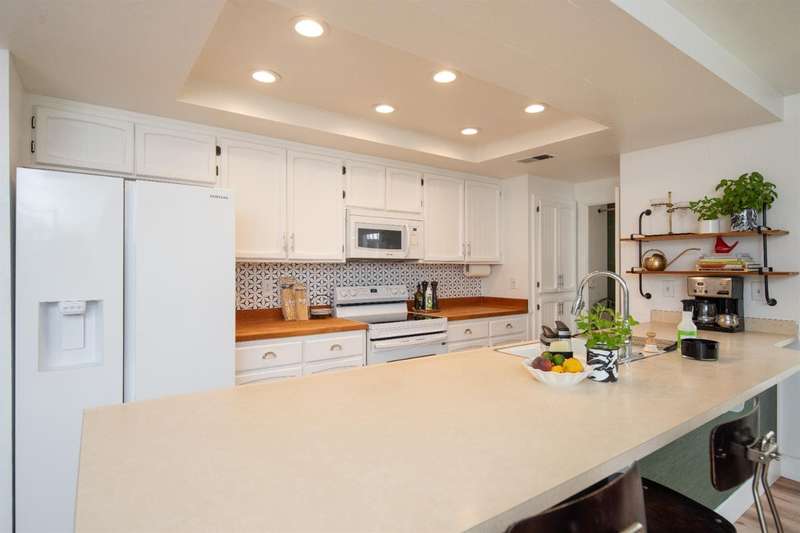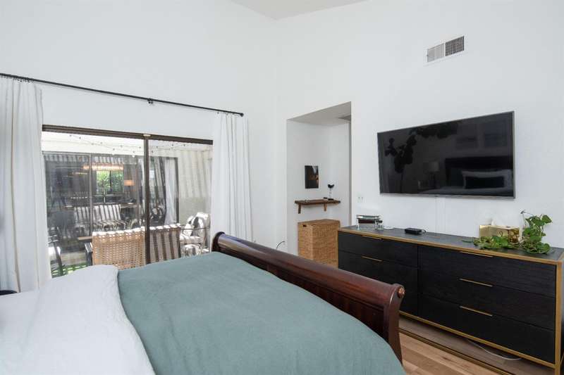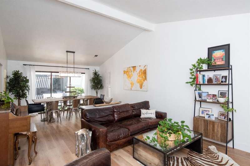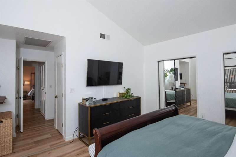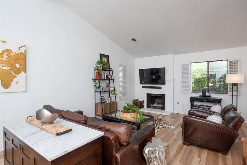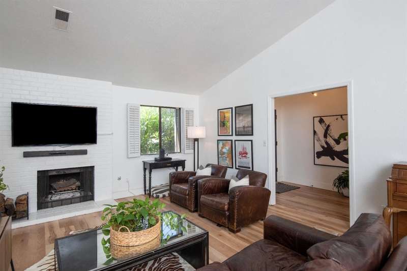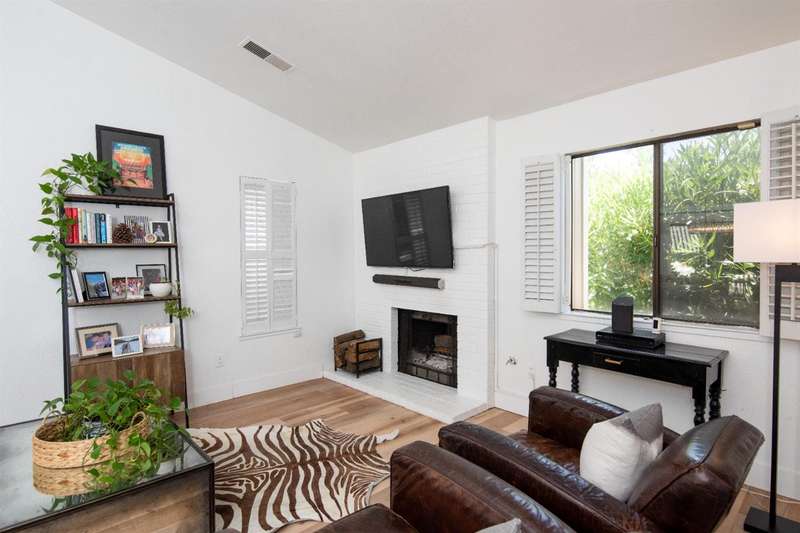 Welcome to this delightfully charming 2-bedroom, 2-bathroom patio home located in the desirable Sylvan Meadows community. An easy walk to restaurants and shopping, this inviting residence offers a spacious living and dining area highlighted by a cozy brick fireplace and soaring cathedral ceilings that continue into both bedrooms, creating an open and airy ambiance throughout..... All underlined with beautiful LVT flooring. The well-designed layout includes twin patios, one off the family room and another off the primary suite perfect for relaxing or entertaining. The primary suite features a separate tub and shower, offering a touch of luxury and convenience. The home also includes a functional laundry room with built-in cabinetry and a two-car garage.