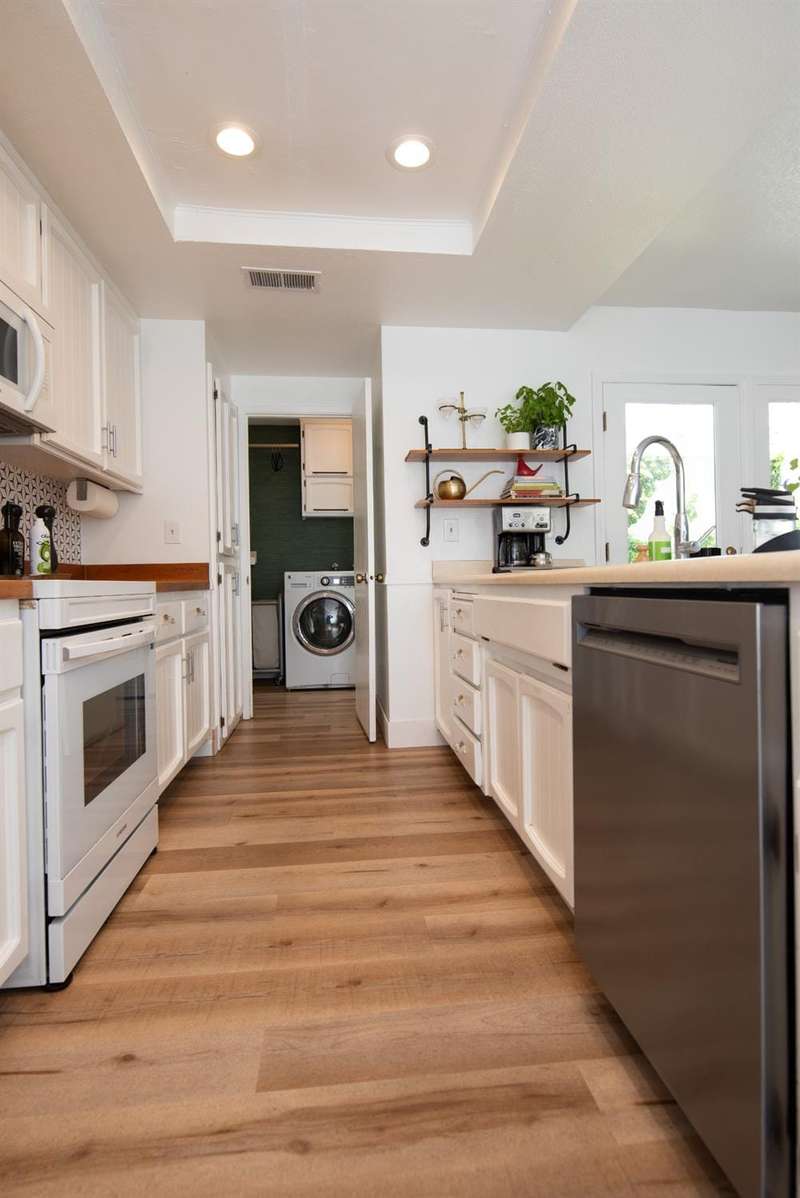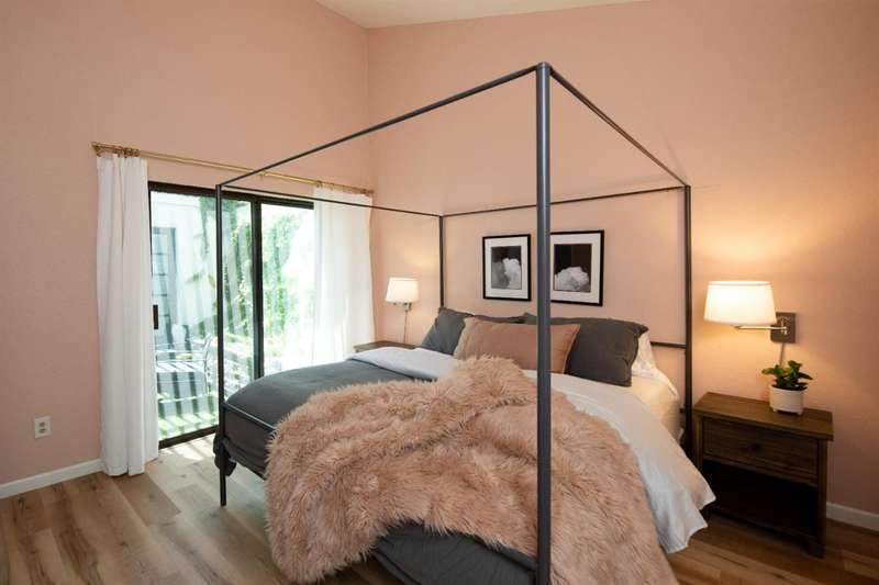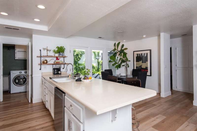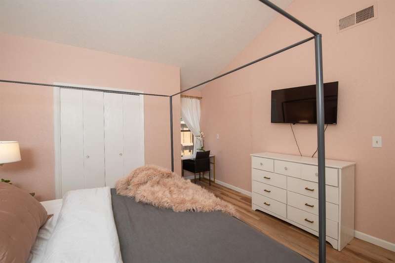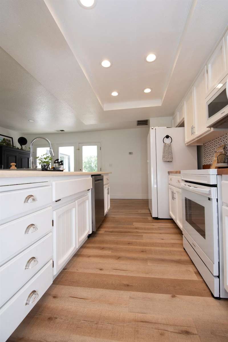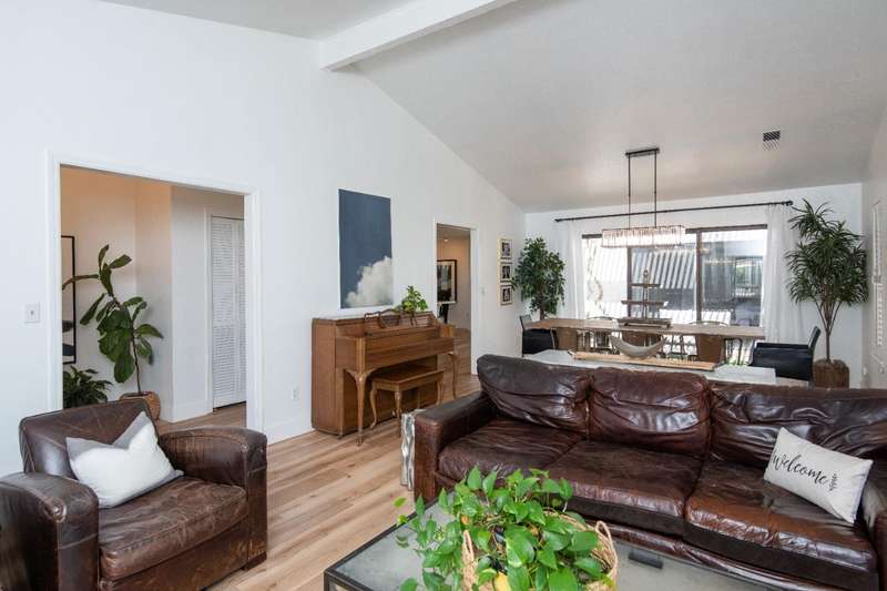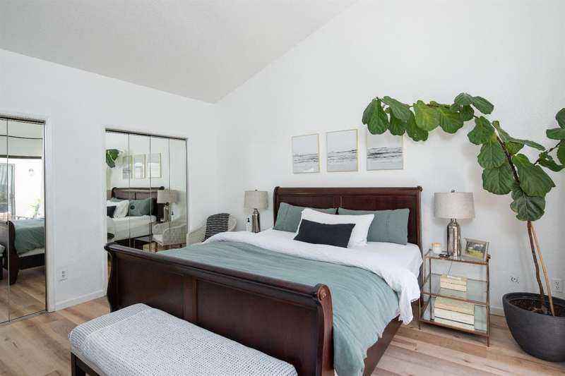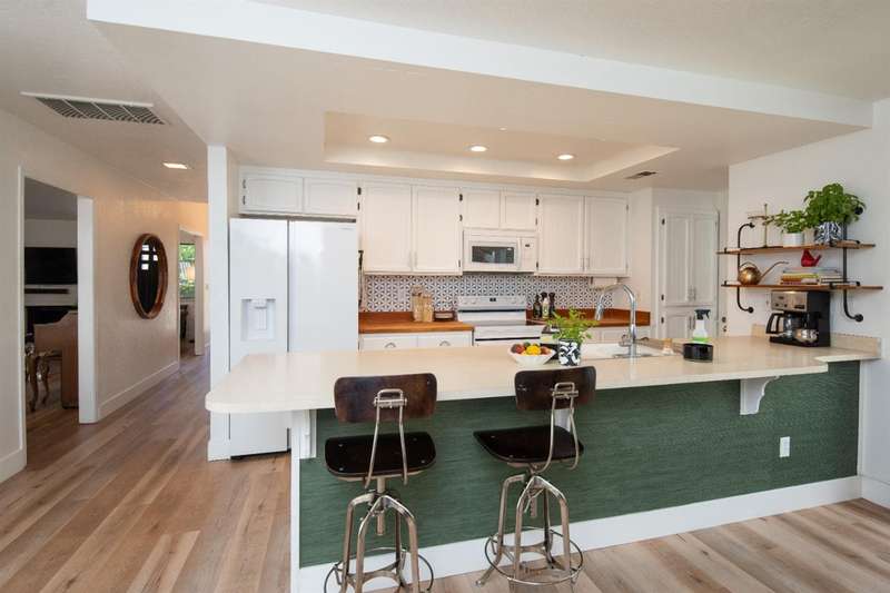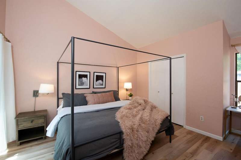 Welcome to this delightfully charming 2-bedroom, 2-bathroom patio home located in the desirable Sylvan Meadows community. An easy walk to restaurants and shopping, this inviting residence offers a spacious living and dining area highlighted by a cozy brick fireplace and soaring cathedral ceilings that continue into both bedrooms, creating an open and airy ambiance throughout..... All underlined with beautiful LVT flooring. The well-designed layout includes twin patios, one off the family room and another off the primary suite perfect for relaxing or entertaining. The primary suite features a separate tub and shower, offering a touch of luxury and convenience. The home also includes a functional laundry room with built-in cabinetry and a two-car garage.