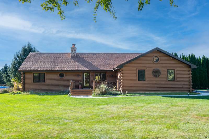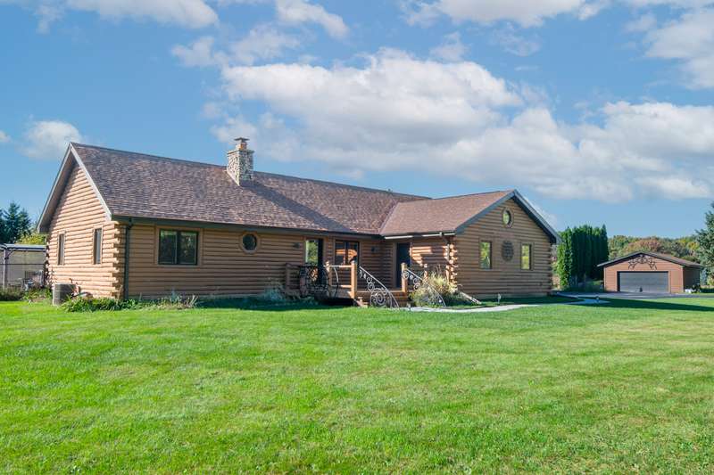 Enter inside this stunning log-sided home, where soaring ceilings and an open-concept design create a warm, welcoming atmosphere. The spacious living room flows effortlessly into the inviting kitchen. Perfect for both everyday living and entertaining guests. With three bedrooms and a thoughtful ranch-style layout, this home offers both coziness and functionality, enhanced by it's beautiful rustic charm. Enjoy peaceful mornings or take in breathtaking sunsets from the large covered back porch or the front deck. Nestled on 4.27 acres, this property perfectly balances natural beauty, privacy, and modern comfort. For hobbyists or those needing extra space, you'll love the 24' x 24' detached two car garage with power, ideal for vehicles, tools, or outdoor toys.