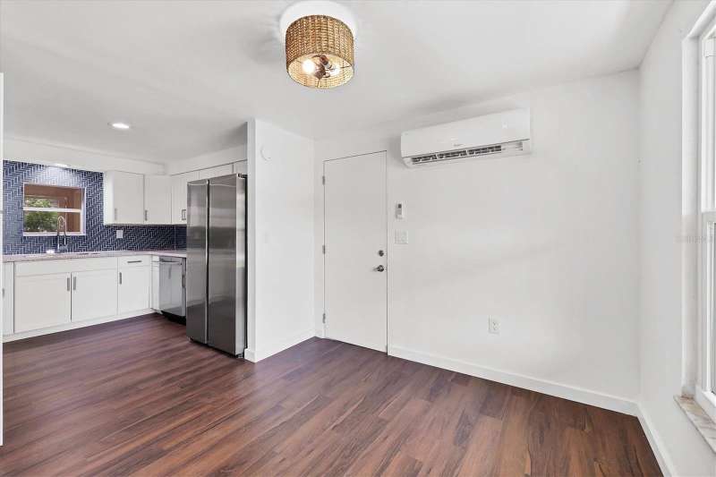 This newly remodeled 2-bedroom, 2-bath mid-century modern home perfectly balances timeless architectural charm with thoughtful contemporary updates. Inside, the beautifully renovated kitchen features solid-surface countertops, a striking backsplash, and sleek new Samsung appliances—ideal for both everyday living and entertaining. The bathrooms have been creatively reimagined with designer finishes that enhance the home’s distinctive character. Located in the heart of west Bradenton, this home is perfect for first-time buyers or those looking to downsize. Enjoy peace of mind and aesthetic appeal knowing the current owner has carefully preserved authentic mid-century style while seamlessly integrating the modern comforts and conveniences of today.