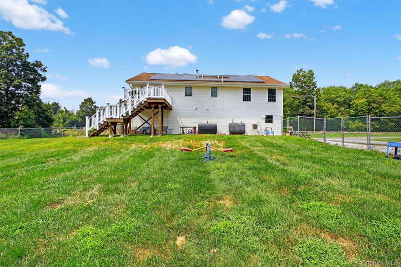 The list can go on and on! Located in the Town of Newburgh with Wallkill Schools THIS is the HOUSE for your Large or extended family. Newly painted with plush new carpeting, this home has just want you want and need. Along with the separate Studio apartment with a huge walk in shower and full kitchen with dish and clothes washer, the main house is equipped with a large Family room, potential additional Master downstairs. Upstairs a full Master with walk-in closet and master bath, 2 other bedrooms, a main bath and a HUGE Kitchen with sliders to a trex type deck with stairs that lead down to a additional concrete patio underneath. A fenced in yard with a playground for the kids, grandkids or the furrier members of your family, and a long parking driveway with a huge carport and 2 car garage and solar panels to help with the high cost of electric! Close to shopping, parks, lakes, trails and more family oriented activities. Also close to Route 84, NY Thruway, Train station in Beacon and bus station in Newburgh to NYC! Don t miss it!!