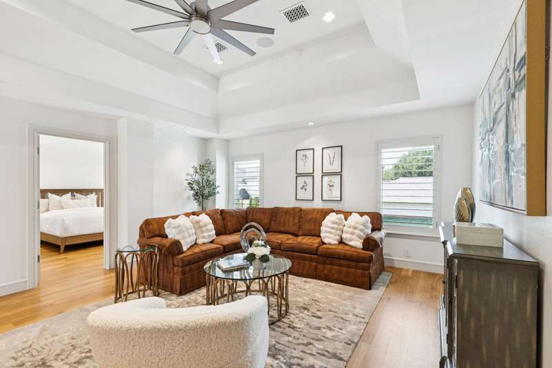 Welcome home to this beautifully updated, light and bright, 4-bedroom, 3.5-bath retreat with an elegant side-entry garage. From the moment you step through the graceful entryway, youre greeted by timeless charmwhether its hosting dinner parties in the formal dining room or enjoying quiet moments in the versatile formal living room or study. The heart of the home is the gourmet kitchen, featuring a large center island with seating and additional storage beneath, updated Wolf and Jennair and Gaggenau appliances, a cozy breakfast nook, and an abundance of custom cabinetry with ample storage for your family chef.The spacious primary suite is a true sanctuary, complete with a relaxing sitting area, private backyard views, and direct access to your outdoor oasis. The spa-inspired bath invites you to unwind with elegant finishes, dual vanities, a soaking tub, and an expansive custom closet.Upstairs, a generous game room provides endless possibilities, while three oversized bedroomseach with walk-in closetsoffer comfort and privacy for family and guests alike.Step outside and discover your own backyard paradise: a sparkling pool and spa, an inviting cabana with soft lighting and ceiling fan, and a built-in grilling station with serving baran entertainers dream. Whether its a summer barbecue or a serene evening under the stars, this outdoor space was designed for unforgettable moments.The spacious 3-car garage with room for storage and epoxy coated flooring completes the picture. Fully updated in 2023 by renowned local interior designer, the home is move-in ready. This home combines everyday comfort with extraordinary style all within walking distance to trails around Lake???????????????????????? Grapevine.