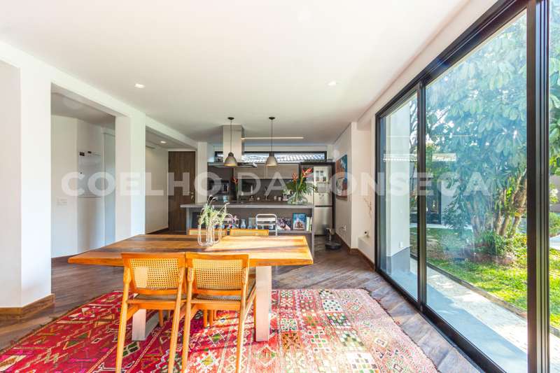 Reforma de extremo bom-gosto com peças que reunem o rústico e o sofisticado em um `rústico chic`. Peças que reunem o antigo e o contemporâneo em vitrais, forro, piso e esquadrias de madeira maciça originais da casa com ferragens em ferro fundido e esquadrias de alumínio anodizado sem divisões.