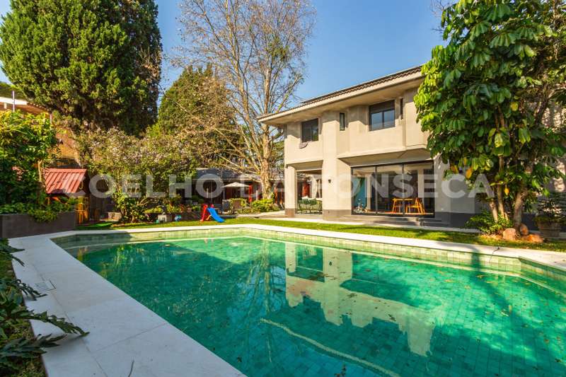 Casa no bairro Alto de Pinheiros com 626m² área construída, 5 dormitório(s), 3 suíte(s), 8 vaga(s), 3 banheiro(s), piscina, escritório, sauna, depósito, ar condicionado, dep. de empregados, reformado (a), varanda, aquecedor solar.