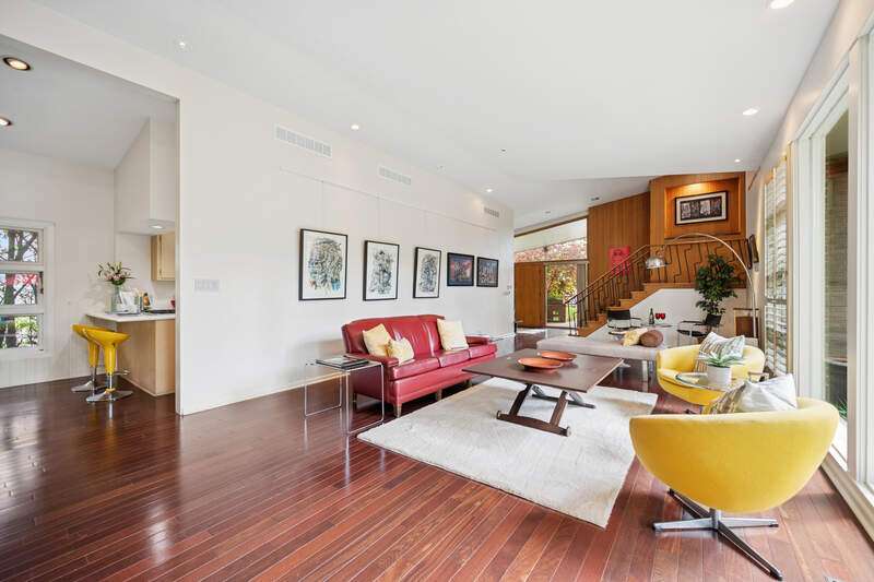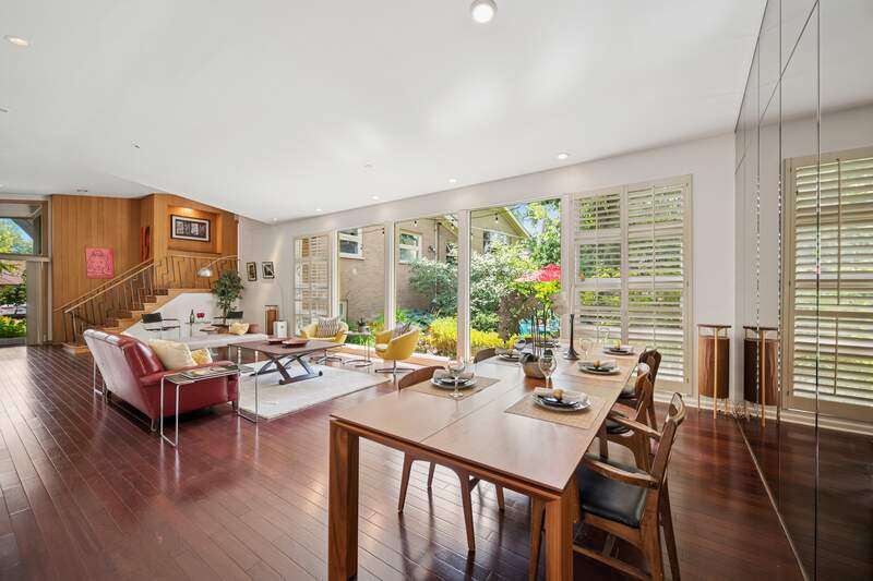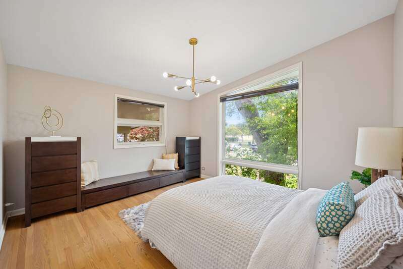 ALL OFFERS DUE Saturday 8/16 at 3:00 p.m. Scheduled appointments only. Rarely available Mid Century Modern (MCM) spacious split level on XL lot (87' x 126') Soaring vaulted ceilings, huge windows overlooking spectacular yard, original wood paneling and ceramic tile bathrooms. Only 1 previous owner! Current owners kept as much vintage detail as possible while also investing in modernizing and adding convenience including 3 new furnaces with smart thermostat, upgraded electrical, upgraded plumbing, commercial grade stainless steel appliances, newer architectural grade roof, new garage door with smart opener, 2nd floor laundry, new shower, new Toto Washlet toilet, high-speed wifi & underground sprinklers. Entertain large gatherings in the huge living room and dining room overlooking the yard. Prepare gourmet meals in the sunny kitchen with tons of cabinetry and casual dining. Relax in the huge primary suite with 2 walk-in closets and spacious bathroom. 3 more bedrooms with vaulted ceilings & 2 additional bathrooms are on the 2nd level. Plenty of room to play on the lower level including a big family room with fireplace, & separate music studio/office. Grill and chill in the lush backyard with mature trees, perennial gardens, 2 brick patios, seating wall and raised veggie gardens. Enjoy the breezy bug-free 3-season room too. This MCM gem is perfectly located only a few blocks from restaurants & shops. Even better, it's across the street from Proesel Park with tennis courts, ball fields, picnic facilities and Aquatic Center including pool with waterslides. It's more than an amazing house; it's an AMAZING LIFESTYLE!