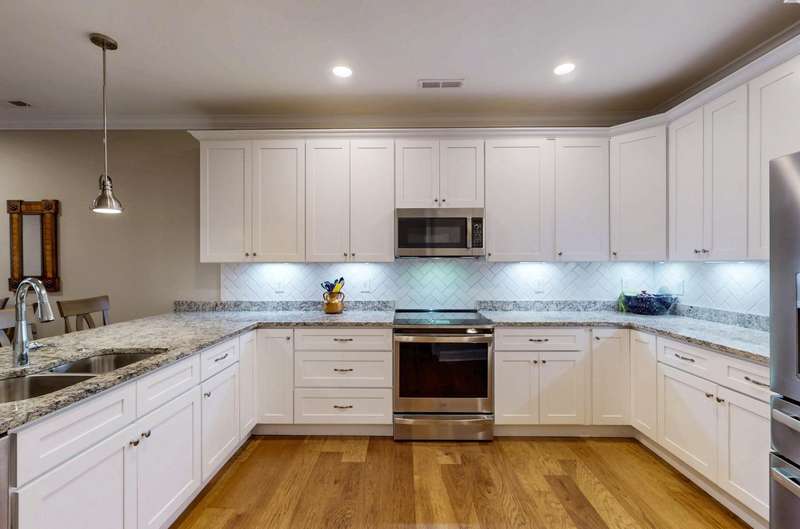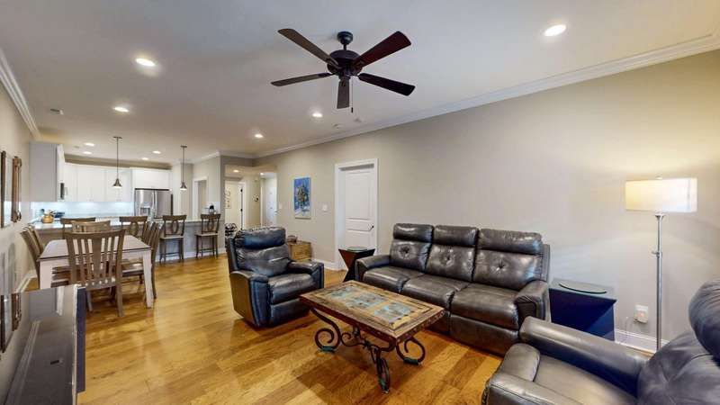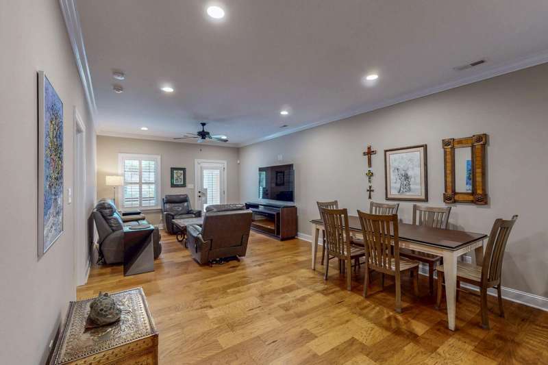 Custom, Custom, Custom....this almost new townhome has been totally customized when owner purchased. This one is really Move-In ready. Offers 3 bedrooms, 2 1/2 baths, all new appliances that remain. Hardwood and tile throughout. Lots of storage everywhere. Has approx 2,100 sq. ft; double garage with epoxy floors. Owners' suite and owners' bath with tray ceiling, walk-in tile shower, double vanities & large walk-in closet. Sunny gourmet kitchen with shaker cabinets & granite counter tops. Partially covered patio with privacy fence, a wall, lots of landscaping, & very private. If you want easy living and great location. Come see this townhome today!
