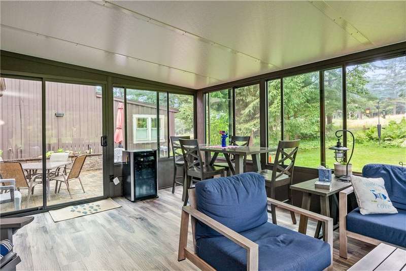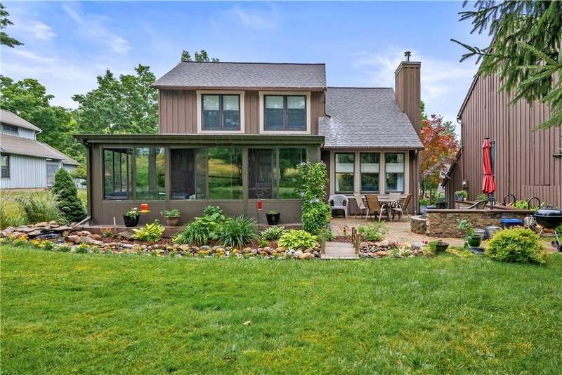 Welcome to 11 Andrews Way in Bristol Harbour Village, nestled on the scenic west side of Canandaigua Lake. This beautifully renovated home offers a peaceful, Adirondack-inspired retreat with modern luxury and comfort throughout?just move in and enjoy![Key Features:] ? 2 Bedrooms & 2? Bathrooms with open loft area ? First Floor owner's suite with double marble sink vanity & walk in shower ? Second Floor open loft area with guest suite & full bathroom ? 2 car garage w/epoxy floor, plenty of storage spaces, crawl space under stairs ? 1st Floor Laundry with Whirlpool Washer & Dryer ? Beautiful American Cherry floors, recently refinished ? New Gourmet Granite Kitchen with backsplash & LG Stainless Steel Appliances ? Open Floor Plan w/stunning cathedral ceiling & loft area ? Open area Dining Room with stained glass chandelier & serving window ? Great Room w/high efficiency wood burning fireplace, mantel, & porcelain facade ? Spacious 4-Season Sunroom addition w/heated floors & windows to wooded lot ? Stone hardscape patio area with fire pit & landscaped waterfall & stream ? Professionally landscaped property surrounded by wildlife & preserved area ? High Efficiency HVAC system protected under Issac Gold Seal Program [Recent Updates:] ? 2025: AC unit. ? 2024: New Kitchen & SS Appliances, refinished hardwood floors, new carpeting on stairs & 2nd floor. ? 2023: Anderson 400 series windows, new washer. ? 2022/21: Sunroom Addition, Patio & pond less waterfall, High efficiency fireplace, master bath updates. ? 2020: Epoxy garage floor & added storage ?2019/18: Painted interior & exterior, new tea-off roof. [Bristol Harbour Village Amenities include:] Private Beach, swim area, kayaking/canoeing, tennis/pickleball/basketball courts, community center (can be rented), fitness center, library, children's playground, manicured common areas, 24-hour access trash/recycling area. Boat slips available [Please Note:] Realist does not include Florida room in SF.