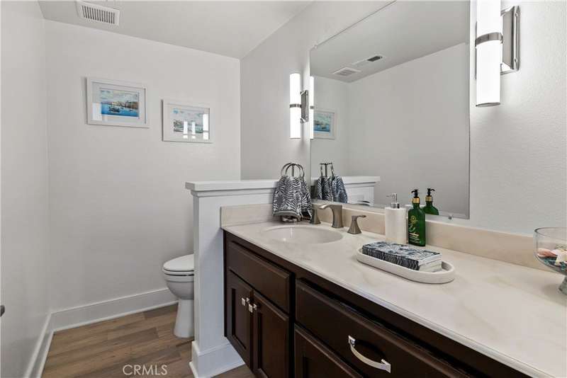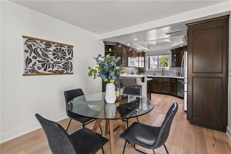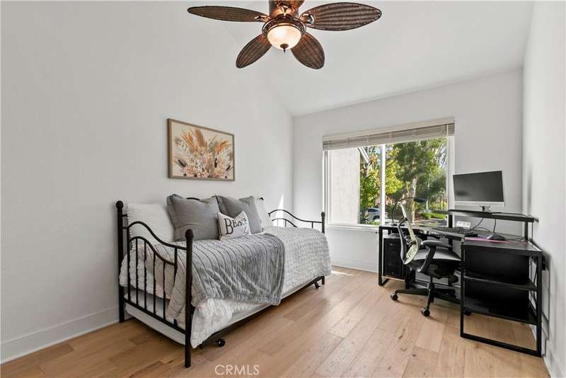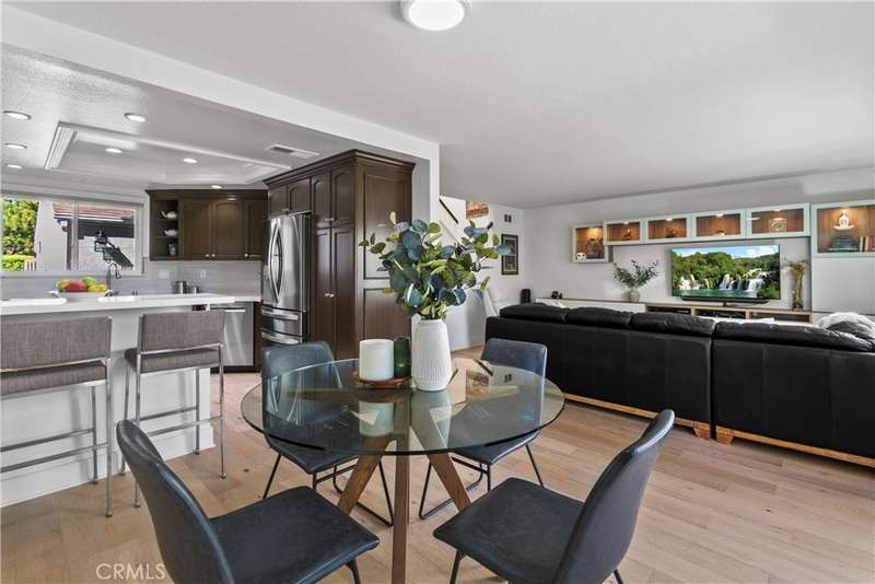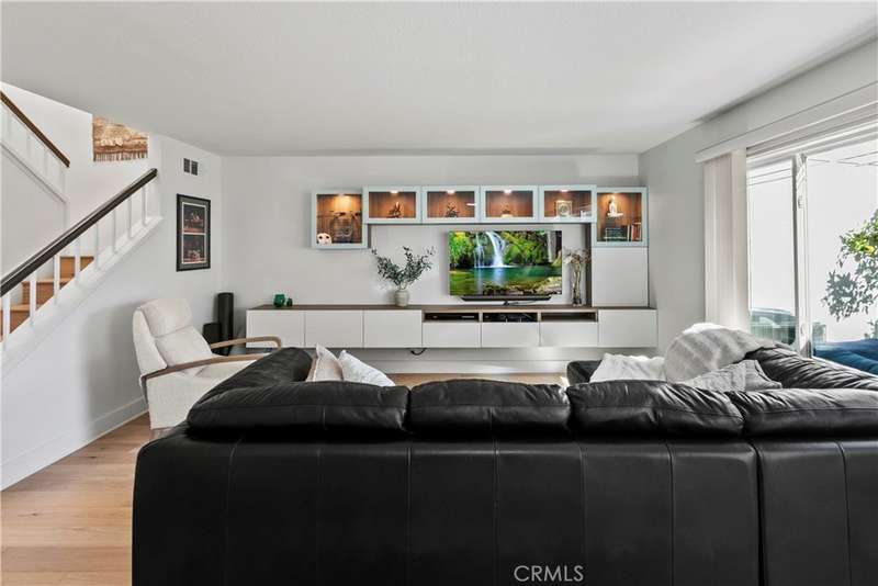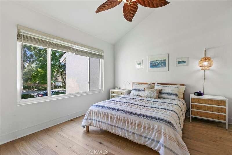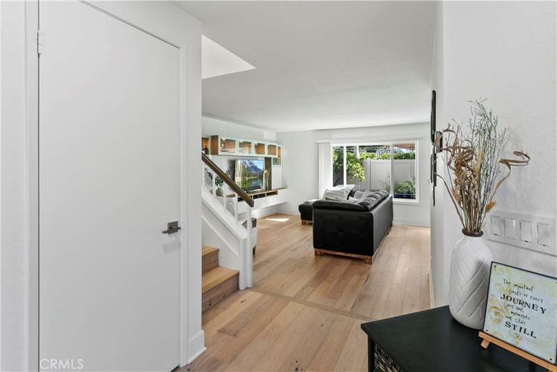 Call Philip Talbert TODAY to see this gorgeous townhome 714-717-8911. Location, Location, Location! This gorgeous townhome sits in the heart of South OC....just minutes to Laguna Beach, the Spectrum and Aliso Town Center...PLUS is walking distance to Laguna Hills Community Center and Laguna Hills High School AND next to the fantastic South OC biking and walking trail system. Move in to this immaculate, TURNKEY home and start living the good life...no weekend warrior projects needed here! You'll love the contemporary vibe with wide plank, REAL HARDWOOD flooring throughout and stylish built-in cabinetry. The designer made all of the right choices here...including modern kitchen with loads of cabinets in rich color tones, beautiful quartz counters and porcelain backsplash. PLUS every chef will enjoy a window at the sink! Convenient breakfast bar is the perfect spot for quick meals or "monitoring" homework. Large slider to the rear yard creates a perfect So Cal, indoor/outdoor lifestyle...and the outdoor space is just right for sunning, BBQ's and pets. Upstairs you'll find three spacious bedrooms all with high, volume ceilings... including a primary suite with room for king size bed, separate dressing area with dual wardrobe closets, and lovely remodeled bath. The additional bedrooms are adjacent to beautiful bath with deep soaking tub. Great upgrades here include contemporary paint palette, stainless accents, dual pane windows, cool A/C, epoxy garage floor and more! This is a MUST-SEE home that will check all of the boxes on your house-hunting list!