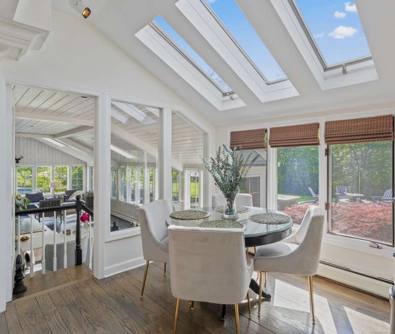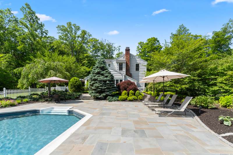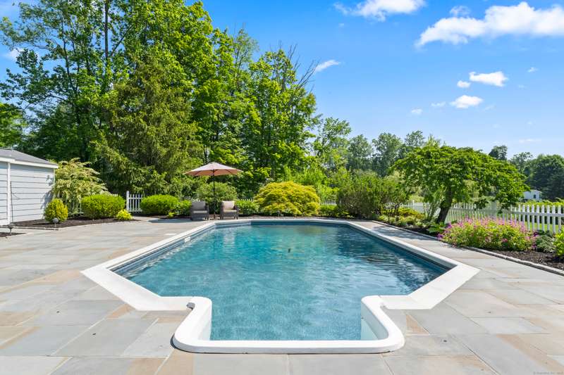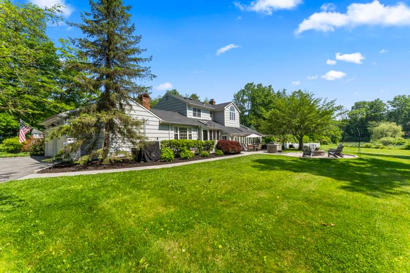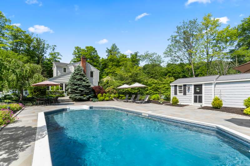 Nestled on a secluded, tranquil lot in a warm neighborhood known for friendly block parties, this move-in-ready home offers a resort-like sanctuary. Thoughtful renovations include new septic systems, a new roof, and a freshly painted exterior. Inside, refinished oak wood floors, new LVP flooring in the family room, basement, and sunroom, and fresh interior paint create a calming atmosphere. A stylish first-floor half bathroom adds elegance, while the primary bath upstairs boasts heated flooring. A new whole-house generator, hot water heater, and dual-zone AC units ensure effortless comfort. The backyard haven features a saltwater pool with new liner, piping, filter, pump, and heater, paired with a chic pool house. Bluestone paving enhances the pool area, walkways, side patio, fire pit, and expanded front porch, providing serene spots for quiet reflection. Lush landscaping and updated landscape lighting amplify the Zen-like tranquility, while a new WiFi sprinkler system simplifies upkee