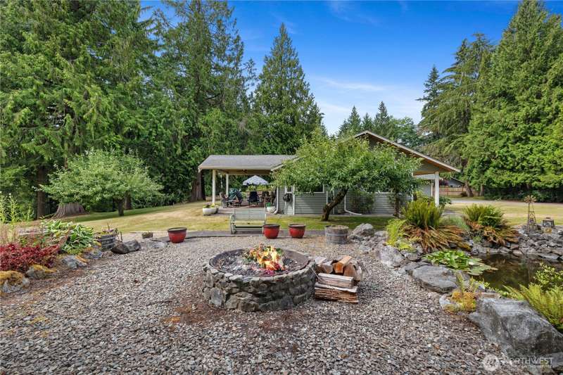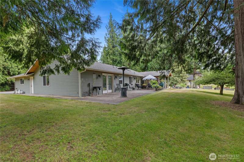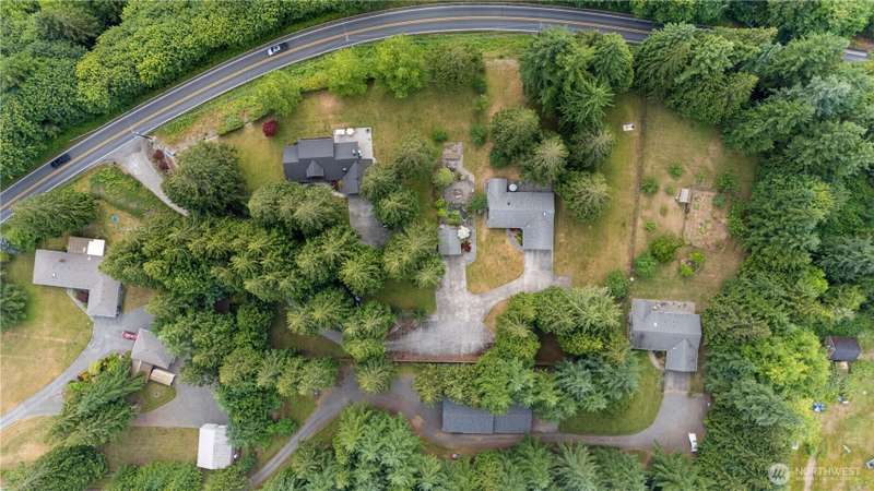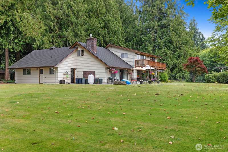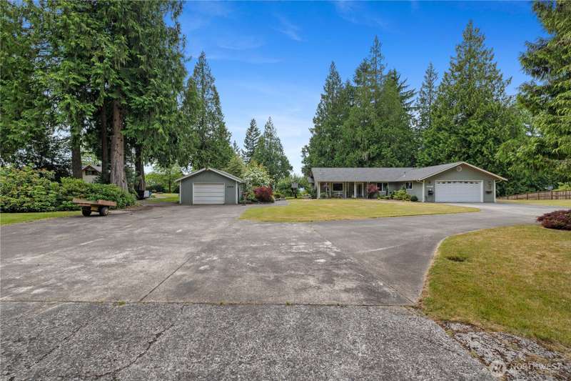 Perfect Multi-Generational living with 2 homes on nearly 3 acres of meticulously landscaped grounds, remarkable old growth cedars, & lush green lawns. Main Home: 3,445sqft, 4+ bedrooms, 3 bathrooms, 2 living rooms, formal dining, huge bonus room, 2 car garage. Primary Bedroom has an incredible walk-in closet and sliding doors to the balcony. Storage shed and playhouse stay. The ADU Home: 1,504sqft, 3 bedrooms, 1.5 bathrooms, 2 car garage, open concept living/dining/kitchen. Slider off Primary bedroom to patio. French doors to covered patio for year-round enjoyment. Greenhouse, raised garden beds, koi pond with beautiful ornamental trees and flowers. Detached Shop! Each home w/separate well, septic, internet, & power.