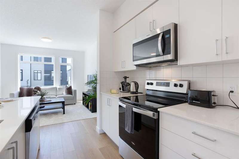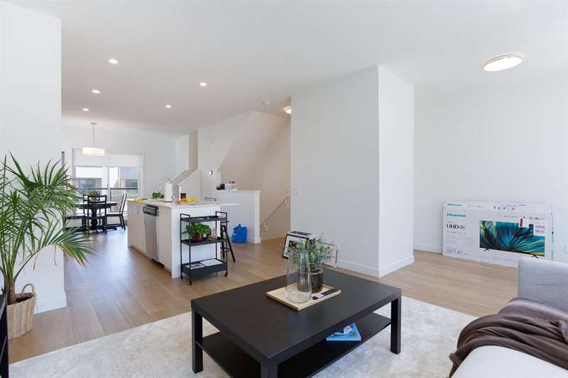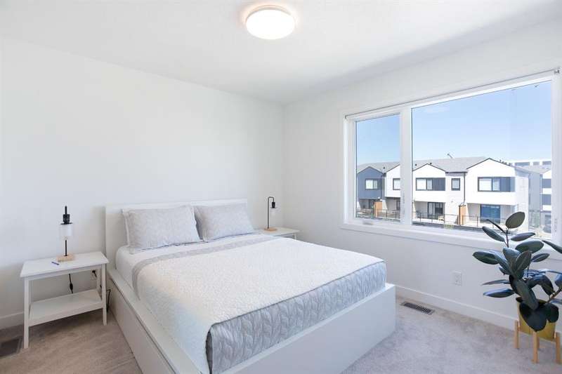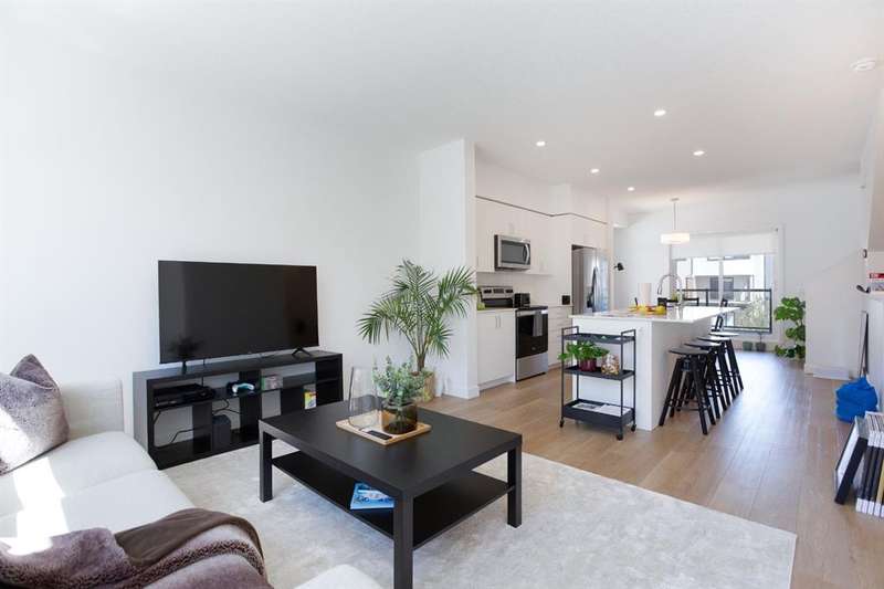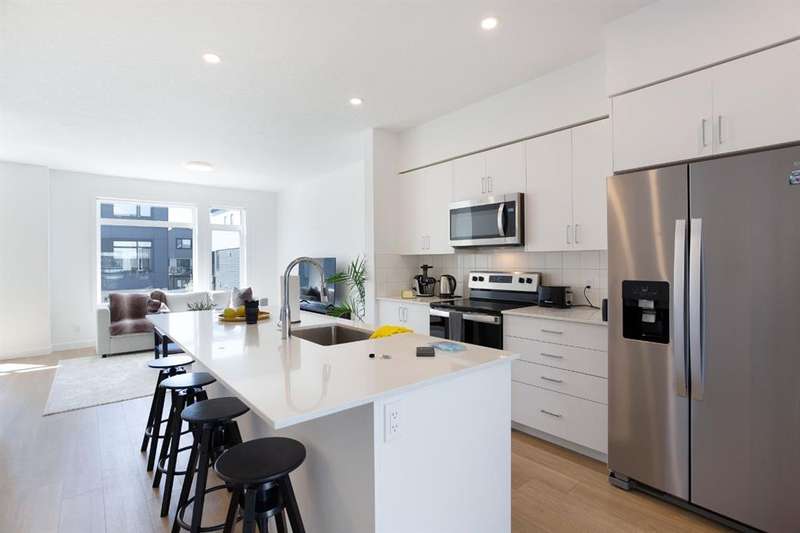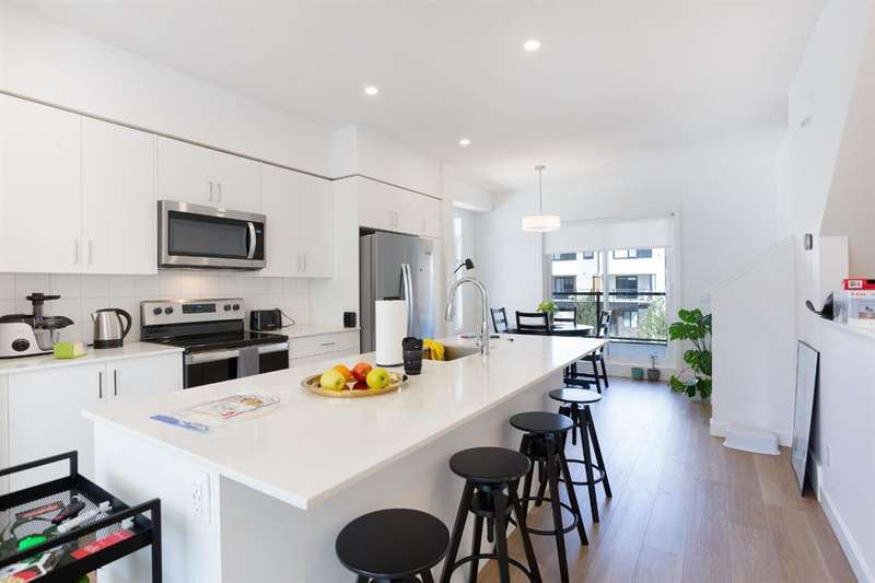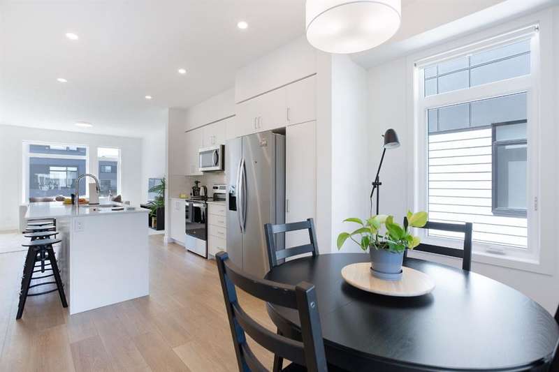 Modern 3-Bedroom Townhouse with Double Garage | 8521 19th Ave SE, Calgary Welcome to this spacious and stylish 1,614 sq. ft. townhouse located in a quiet and convenient pocket of SE Calgary. Boasting a bright, open-concept layout and a double attached garage with a front concrete pad and air conditioning, this home offers the perfect blend of comfort and functionality. The main entrance is located on the lower level, providing a private entryway that leads upstairs to the heart of the home—an open living space featuring a modern kitchen with a large center island, seamlessly connected to the dining and living areas. Perfect for entertaining or family time, this floor also includes access to a private balcony off the dining room, ideal for morning coffee or summer evenings. Upstairs, you’ll find a convenient upper-floor laundry room, a full 4-piece main bathroom, and three generously sized bedrooms. The primary suite includes a walk-in closet and a private 3-piece ensuite, offering a quiet retreat after a long day. With modern finishes, a smart layout, and an abundance of natural light, this home checks all the boxes. Whether you’re a first-time buyer, growing family, or investor, this property is a must-see. Don’t miss your chance to own this fantastic townhouse in a growing SE Calgary neighborhood. Book your showing today!