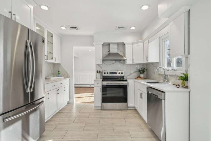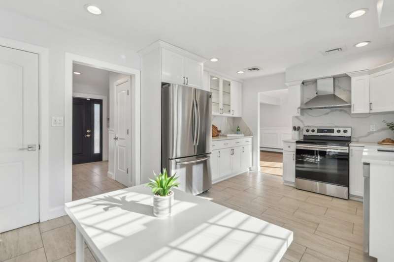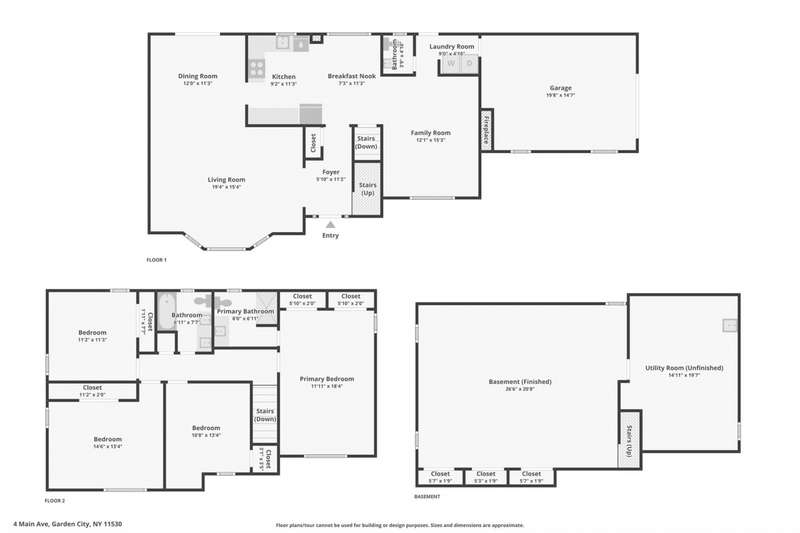 Arrive at home to this updated Estates colonial, featuring 4 spacious bedrooms on the second floor, including a primary en-suite. This thoughtfully renovated home with hardwood floors throughout offers an open floor plan and flexible living space, ideal for modern living. Light-filled living room with oversized bay window adjoins a separate dining room with sliders to the patio and private backyard, perfect for entertaining. Eat-in kitchen with quartz countertops and stainless-steel appliances opens to a cozy family room with fireplace. A remodeled powder room and laundry room round out the first floor. The second floor features a primary suite that includes a marble bath with walk-in shower, three additional bedrooms with ample closet space, and hall bath with tub and double vanity. Conveniently located near two railroad stations, two blocks from both Tullamore Park and Nassau Haven Park, and one block from the Garden City Bird Sanctuary, this inviting home offers the best of suburban living.