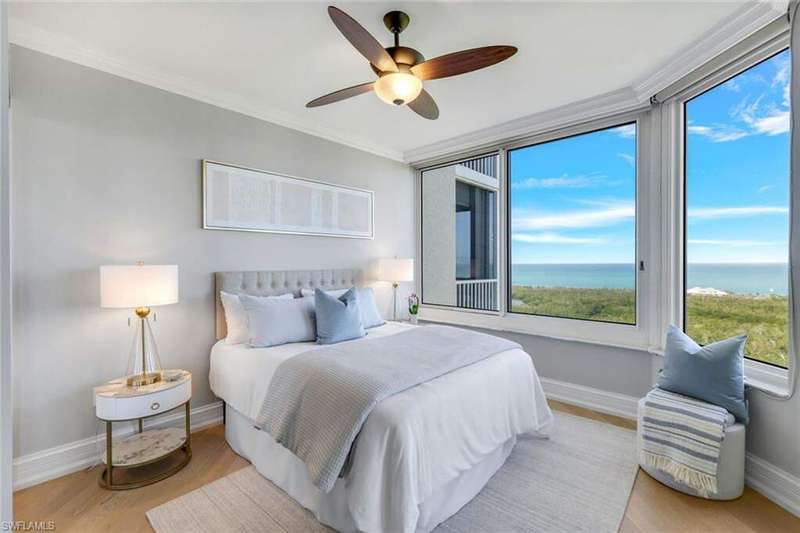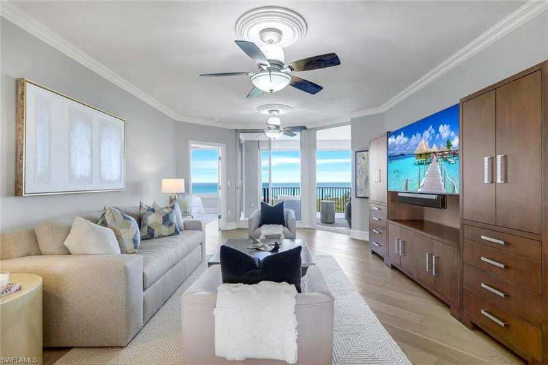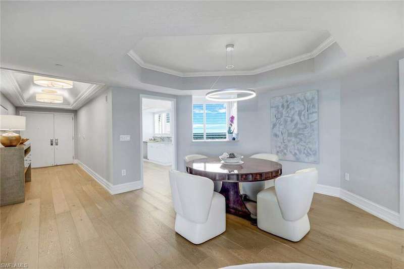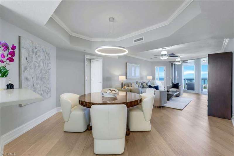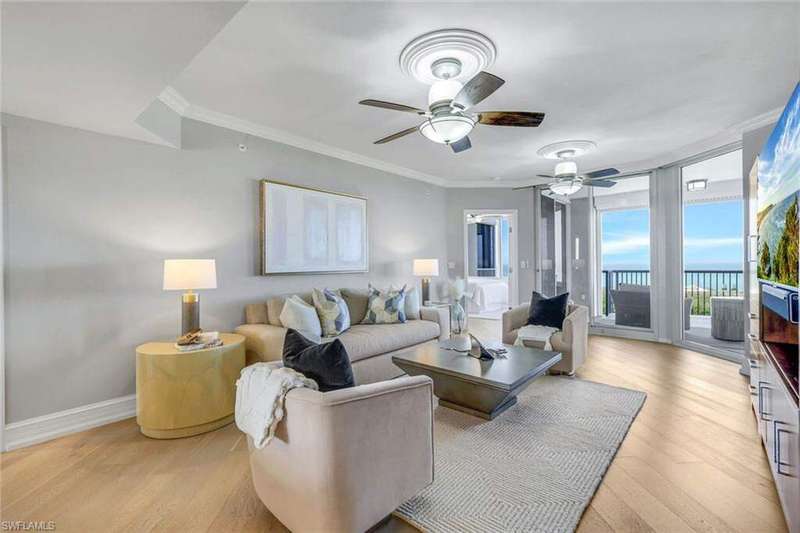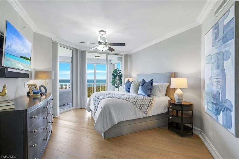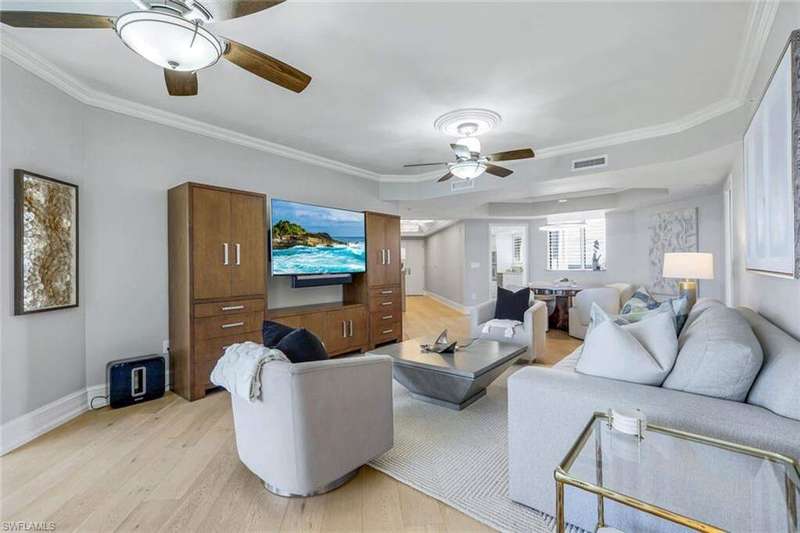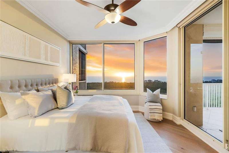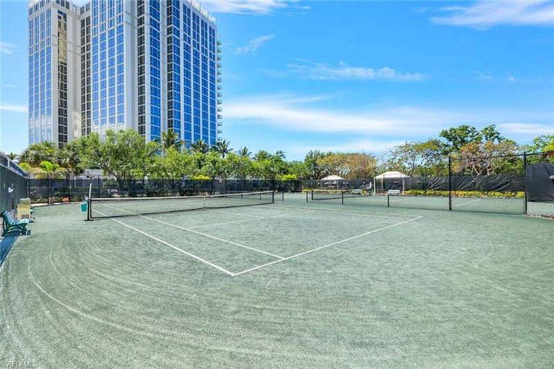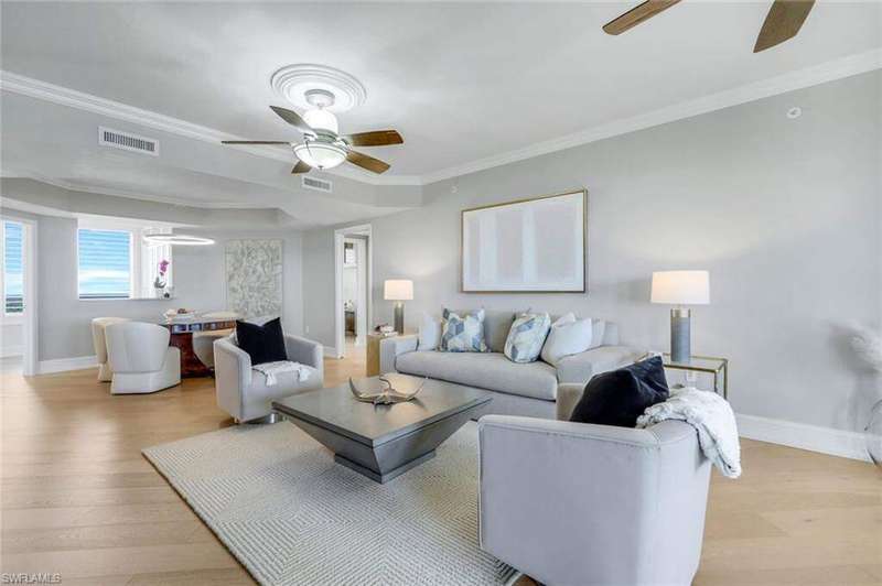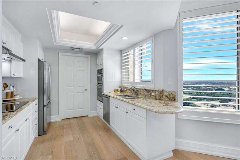 Introducing this exquisite beach access oasis in the heart of Naples, where luxury meets coastal living. This 16th floor St Raphael unit in Pelican Bay features 3 bedrooms and 3 full bathrooms with gorgeous 5" wide plank wood flooring throughout, tray in tray ceilings, plantation shutters, custom automatic shades, updated lighting, with gorgeous views from every room. The kitchen has been updated with granite counter tops with ogee edges, Wolf induction cook top and JennAir appliances and has an eat in kitchen area where you can enjoy your morning coffee overlooking the golf course. Each room has had custom organization added as well as additional storage space. A custom built home office was designed for one of the bedrooms. Enjoy peace of mind with electric hurricane shutters on your lanai space. Revel in the breathtaking views of the Gulf of Mexico from your balcony, while relishing the convenience of nearby irresistible amenities such as two Gulf-front restaurants, near by tram access, tennis facilities, a 27-hole golf course, boardwalks, Fitness & Wellness center as well as on-site amenities including a pool & hot tub, fitness room, tennis courts, library& club room and conceirge services. You are only a short distance to Waterside Shoppes with luxury shopping is offered and the choice of multiple dining options as well Baker Museum - Artis Naples where you can enjoy numerous events and exhibits. This unit also features 2 deeded garage parking spaces as well as 2 additional joined storage spaces on garage level and 1 add'l storage closet on 16th floor. You will love living in this premier community centrally located in Naples.