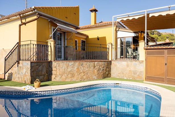 We present this wonderful family home located in one of the most sought-after areas of East Málaga. The property enjoys a privileged location: just a short walk from the beach, surrounded by a quiet and safe neighborhood, close to the city’s best schools, and with excellent connections both to the center of Málaga and to the motorway and the airport.Facing south, the house is designed for comfortable family living. It sits on a private plot with a sunny pool, a solarium area with artificial grass, a charming garden with flowers and fruit trees, including a mandarin and a lemon tree, as well as a barbecue area with storage and a spacious porch with two separate seating areas, perfect for gatherings and outdoor dining.The home is distributed across two well-planned levels. On the main floor, you will find a large kitchen with a marble countertop, breakfast area, and plenty of storage space. The bright living room with fireplace opens directly onto the porch, seamlessly blending indoo