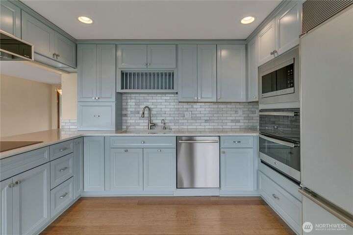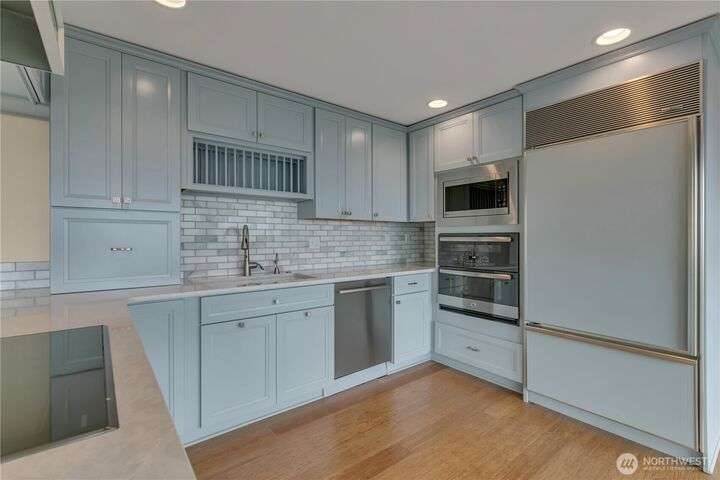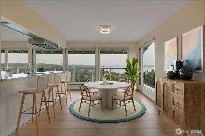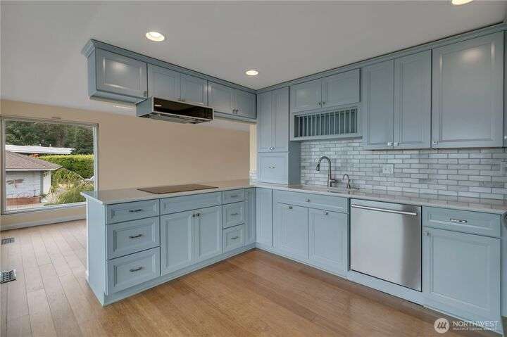 Looking for unobstructed views of Puget sound, Mt Rainier & Territorial views as far as the eye can see, this is it! Upon entry of the main floor you will find a nice living space, dining area, beautiful updated kitchen featuring new stylish cabinets, quartz countertops & built in appliances, family room w/gas fireplace & half bath. The bamboo flooring compliments this level. Notice those evening sunsets. The lower level offers a primary suite w/private bath, walk-in closet & an additional view deck for relaxing. Two additional bedrooms, full bath & laundry space complete this floor. Looking for a shop? See the daylight basement/shop for arts & crafts, or maybe more storage. Located on a nicely landscaped lot. Lot A beach rights are a plus…