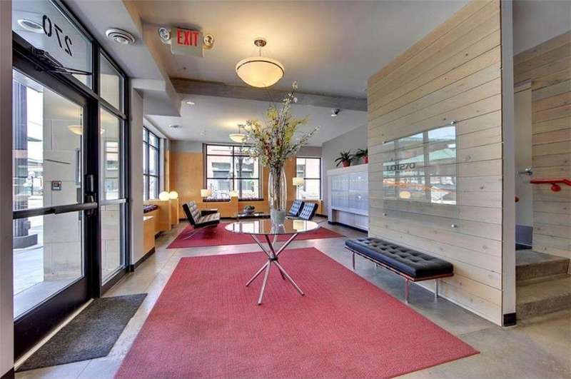 Live in the heart of historic Lowertown in this beautifully appointed condo offering views of the city skyline and Mississippi River. This 4th floor, corner-unit gem delivers front-row views of CHS Field and the St. Paul Farmers Market—an unbeatable location just steps from Union Depot, the light rail, and the best of downtown living. Spacious, open-concept layout with 10 ft ceilings, hardwood floors, and floor-to-ceiling windows. The gourmet kitchen with stainless steel appliances, granite countertops, a drink fridge, and elegant marble finishes. Retreat to the private primary ensuite offering marble tiles, soaking tub, step-in shower, generous closet space w/ custom organizers and private balcony. . Convenient in-unit laundry, heated garage with tandem parking spots w/ EV charger in place. Enjoy a short walk to Mears Park, St. Paul Farmers Market, CHS Field, dining, nightlife, riverfront trail. Recent updates include: HVAC 2024, washer & dryer, EV charger, LVP flooring, Hunter Douglas blinds with remote & app. Building has new security system and updated community room.