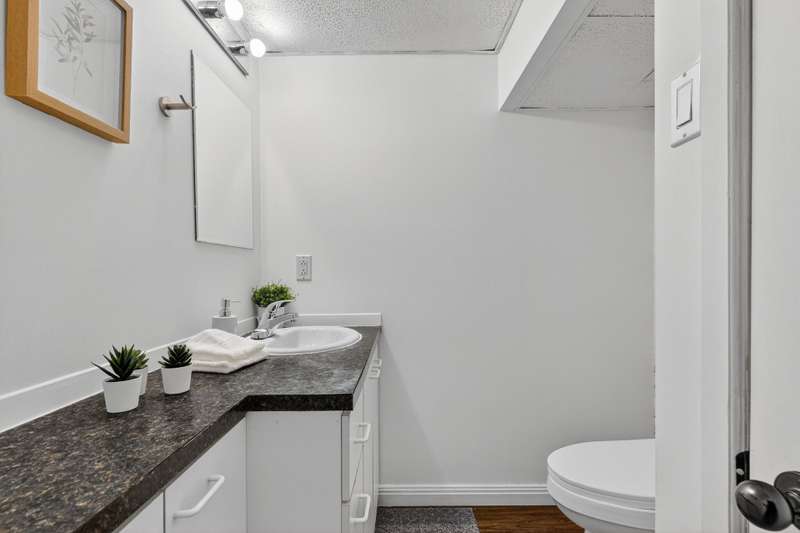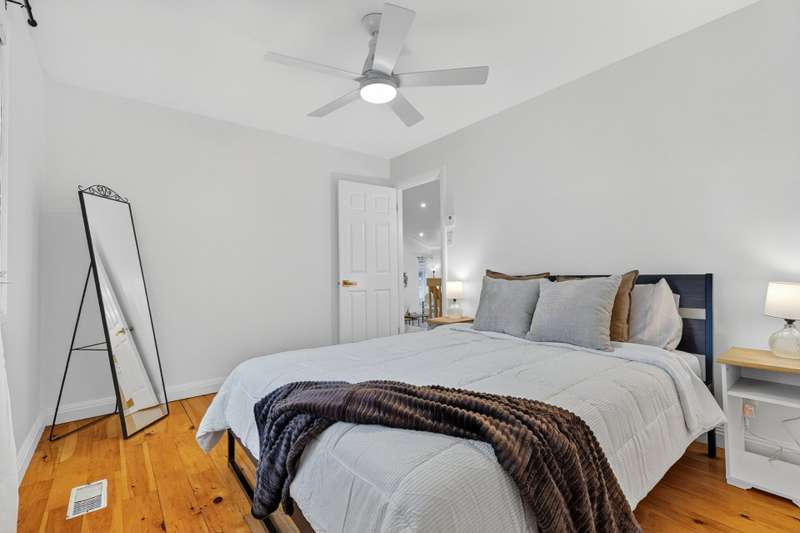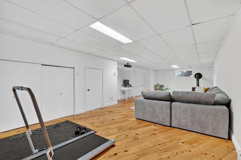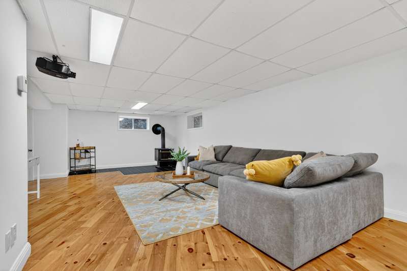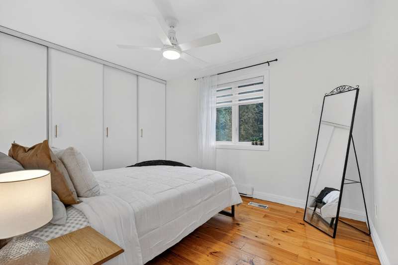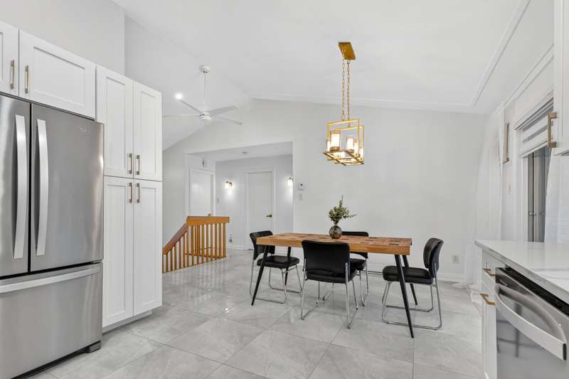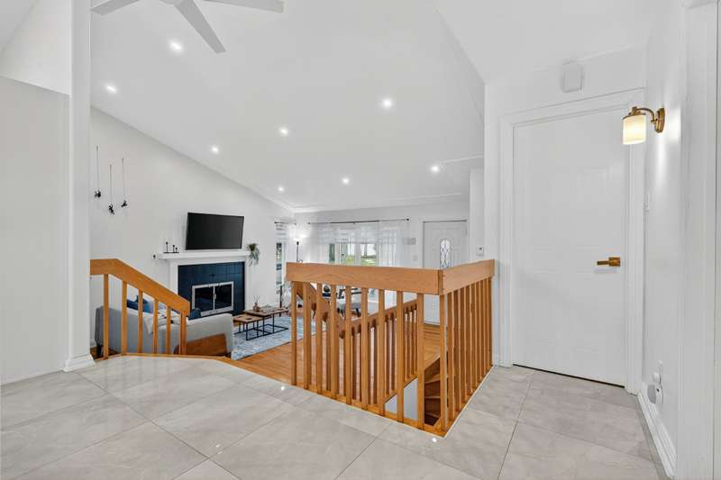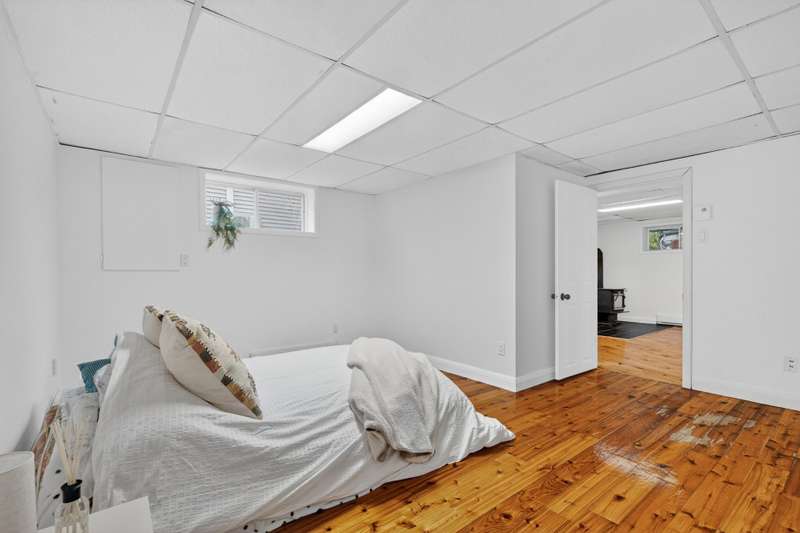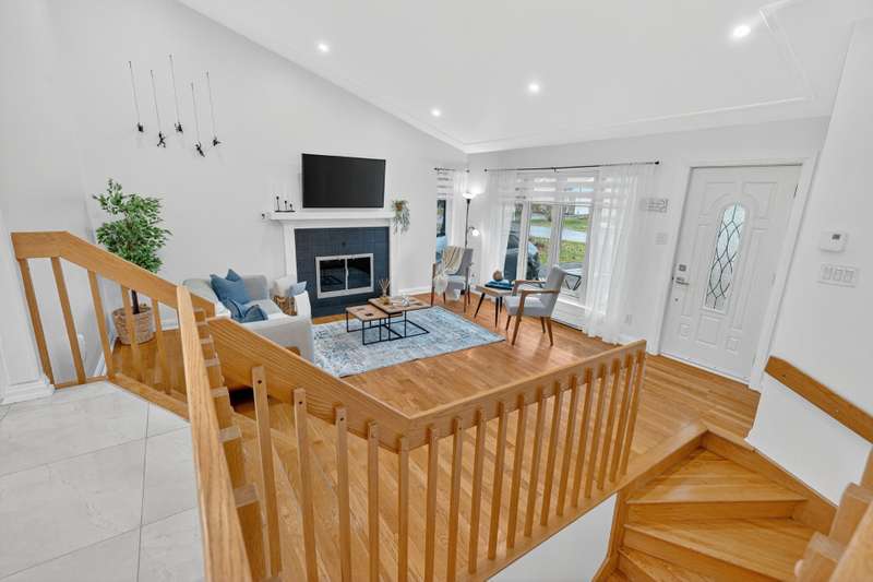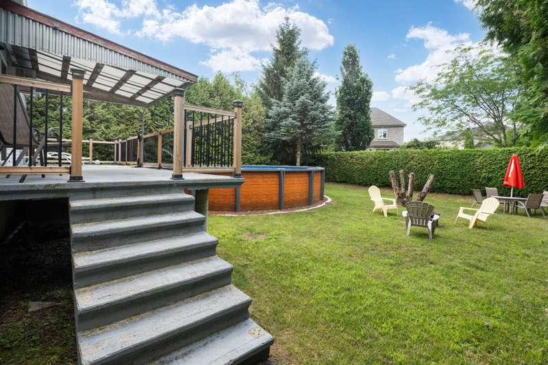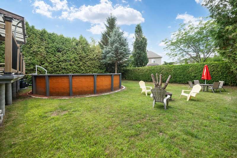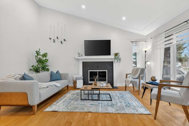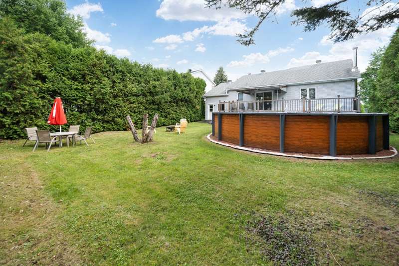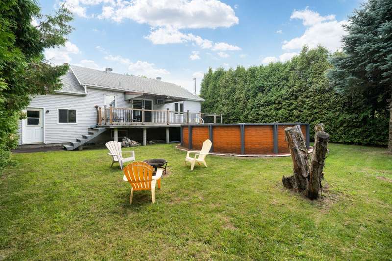 Step into a warm and inviting detached bungalow in the heart of Saint-Zotique, where natural light pours through cathedral ceilings and a wood-burning fireplace sets the tone for cozy living. The beautifully renewed kitchen features fresh ceramic floors and opens to the backyard through a large patio door. The fully finished basement offers a generous family room, wood stove, and heated garage access. Outside, a private yard bordered by mature cedars and a 24-foot pool creates a serene space to unwind.