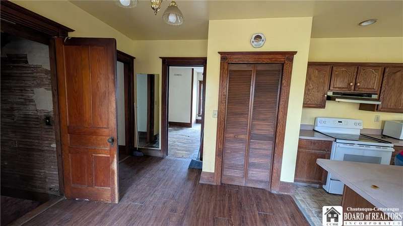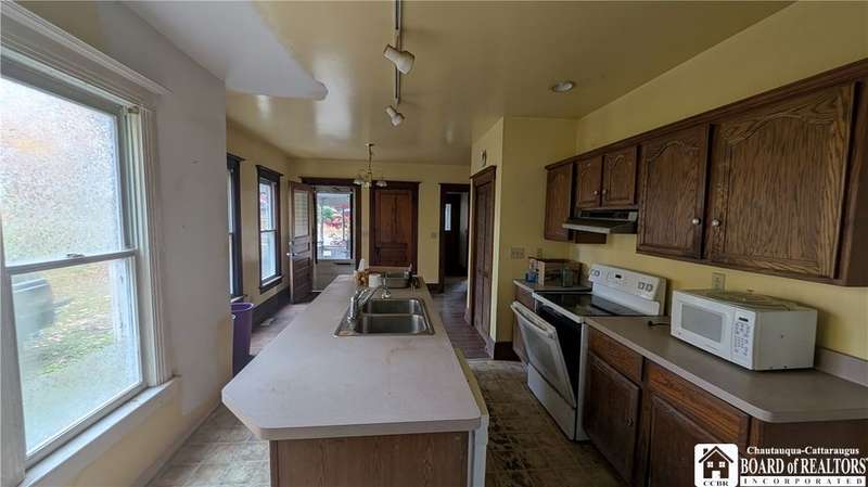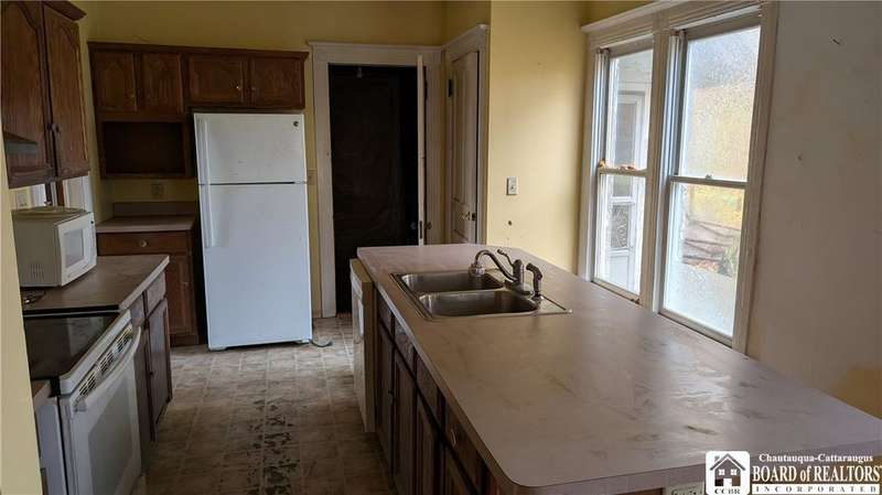 Two-story rehab opportunity featuring five bedrooms, two full bathrooms, a new metal roof less than 10 years old, and a flexible layout ideal for investors or owner-occupants. The home offers potential to be converted into a 2-family property with existing separate living areas and multiple entrances?large rooms, high ceilings, and ample natural light throughout?zone residential with a layout conducive to two separate units. Property is being sold as-is. This home is ideal for a complete rehab project and is priced ready to bring a new vision to a timeless structure!