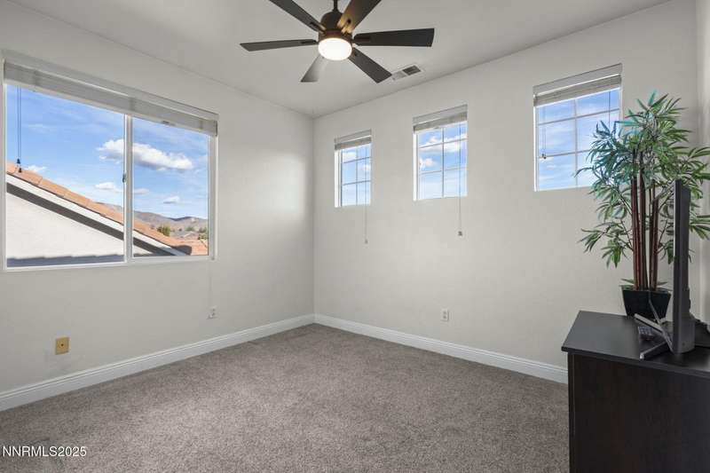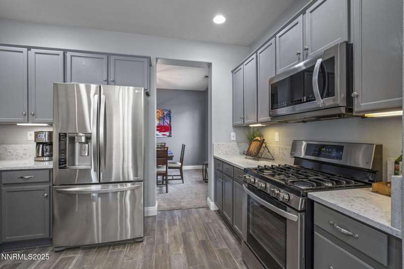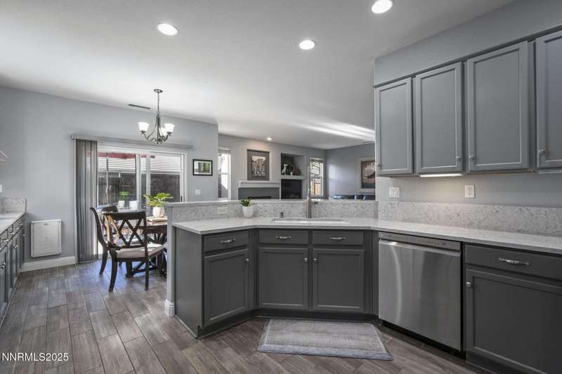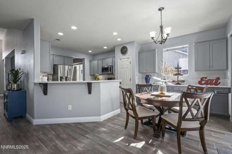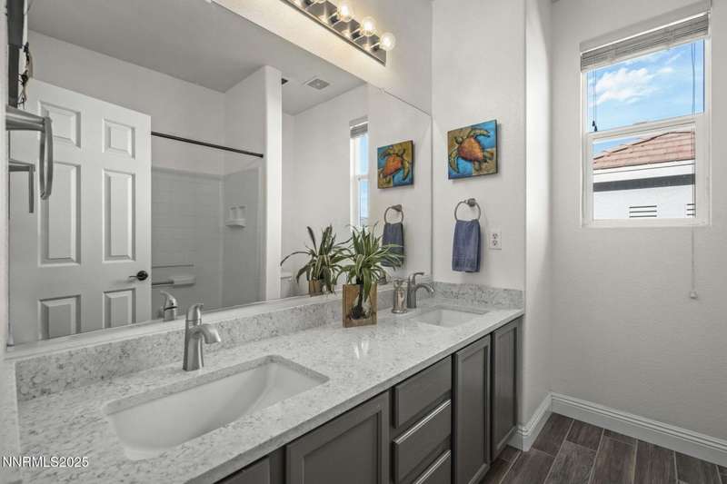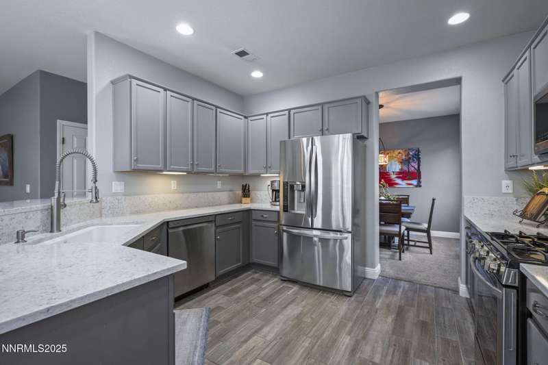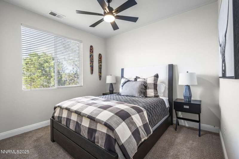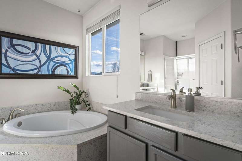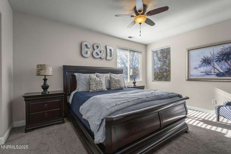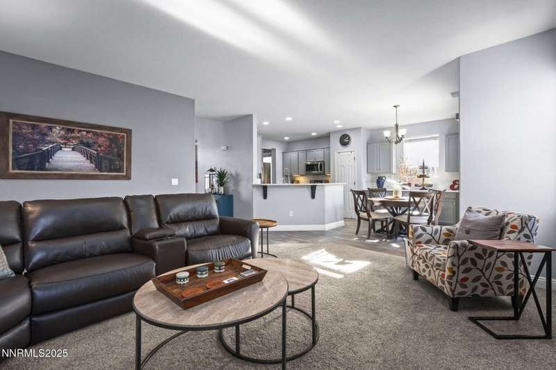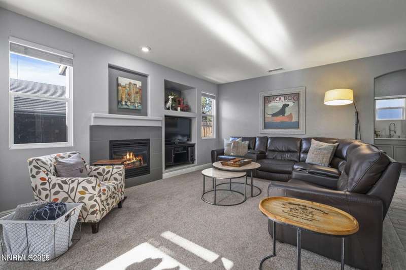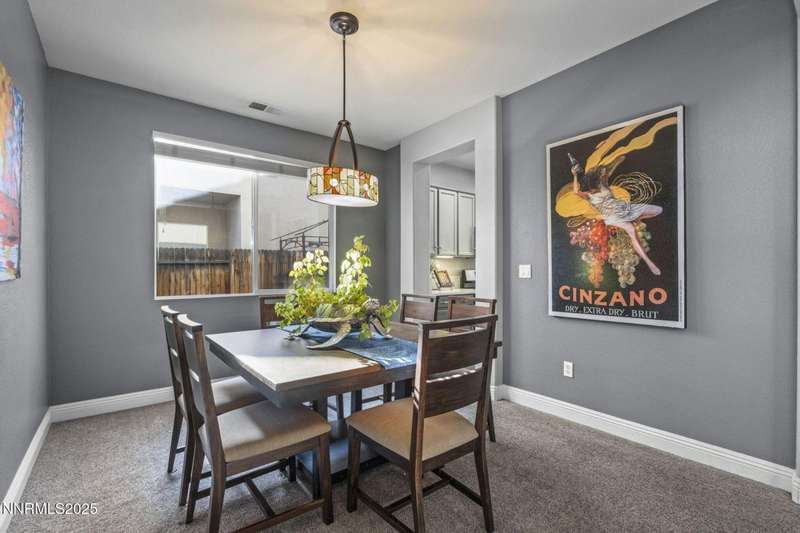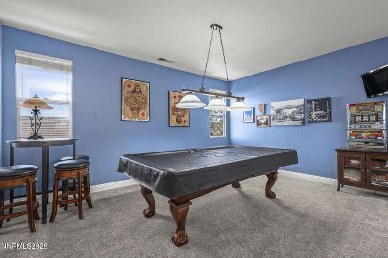 Welcome home to 10431 Silver Rush Ct-a beautifully kept 4-bedroom, 2.5-bath residence tucked into the friendly, convenient neighborhood of Double Diamond in south Reno. This home is truly move-in ready, with a thoughtful string of updates that let you skip the major renovation stress and start enjoying life right away. Walk in and you'll be greeted by an open, airy floor plan under soaring ceilings. The living areas shine thanks to fresh paint and new flooring (ceramic tile in the foyer, kitchen, bath and laundry rooms,with carpet in the living, dining, family and bedrooms) so the aesthetic feels modern yet comfortable. The heart of the home is the upgraded kitchen and adjacent breakfast nook-ideal for morning coffee, casual meals with family, or entertaining friends. Flow from the kitchen into the generous family room, then out through sliding doors to a backyard oasis sized just right: low maintenance, landscaped, ready for summer evenings or a quiet spot for your dog to roam. Upstairs, you'll find the primary suite with a walk-in closet and a spa-inspired soaking tub that invites you to unwind after a busy day. The additional bedrooms are well-sized (great for kids, guests or a dedicated home office) and the loft/game-room space is offered furnished with the pool table and came room necessities like a vintage slot machine! Beyond the walls of the home, Double Diamond offers the best of both worlds: a peaceful, suburban vibe with mature landscaping, accessible walking paths and quiet streets, yet just minutes from shopping, dining and access to major roads.