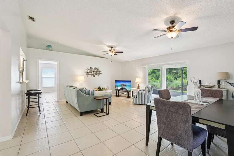 Ask about a lender provided rate buy-down credit on this home /// Seller may consider buyer concessions if made in an offer /// Welcome to your new home sweet home and this well maintained single story 3-bedroom, 2-bath home in The Wilderness community of Kissimmee! Sitting on a spacious .23 ACRE LOT and backing up to peaceful CONSERVATION, this home combines a great layout with privacy and convenience. Inside you will find TILE FLOORS THROUGHOUT and an inviting OPEN CONCEPT great room complete with a vaulted ceiling. There is a natural flow into the EAT-IN KITCHEN, delivering STAINLESS STEEL APPLIANCES, pantry storage and a cozy casual dining space. Sliding glass doors open to an expansive SCREENED LANAI and the perfect spot to enjoy Florida’s indoor/outdoor lifestyle all with a WOODED VIEW. The SPLIT BEDROOM floor plan offers privacy for all – your PRIMARY SUITE features a large WALK-IN CLOSET and private bath, while bedrooms two and three share a full bath on the opposite side of the home. Additional highlights include: a 2-car garage with EPOXY FLOORS, WATER SOFTENER, and ample closet storage. The home has been nicely landscaped and offers the flexibility of negotiable furnishings - you can just move right in! Residents of The Wilderness will enjoy a COMMUNITY POOL, playground and tennis courts all with a LOW HOA. Perfect as a starter home or solid investment opportunity, the location can’t be beat – close to shopping, dining, and major roadways, with area theme parks and resorts just minutes away! Call today to schedule a tour!