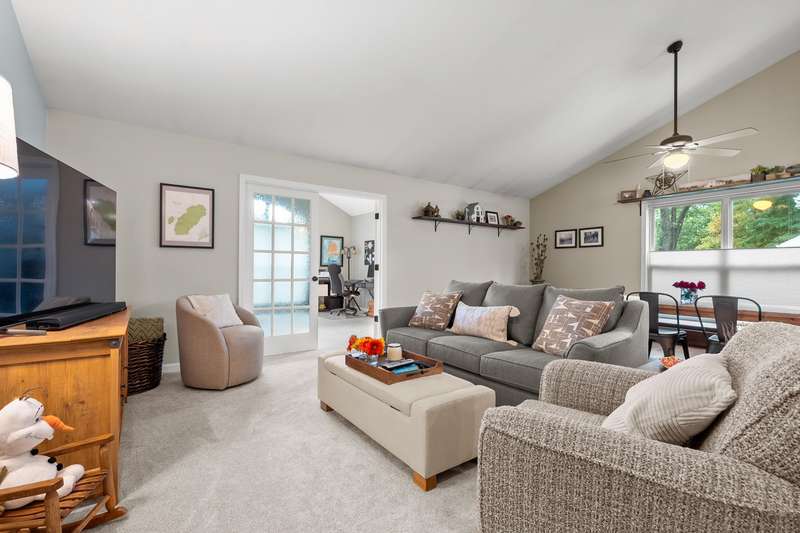 Charming Portage AVB Ranch on a Cul-de-Sac Nestled in one of Portage's most desirable neighborhoods, this beautifully maintained and tastefully updated ranch offers striking curb appeal and a welcoming open-concept design. The vaulted great room with a cozy fireplace flows effortlessly into a stunning vaulted sunroom-perfect for relaxing, entertaining, or enjoying views of the private backyard-with easy access to the patio.The kitchen features hardwood flooring, quartz countertops, an eating bar, and included appliances, and opens to a bright, inviting dining area. Convenient main-floor laundry adds to the home's everyday functionality. The spacious primary suite includes a walk-in closet and private bath with a walk-in shower, while two additional bedrooms share a well-appointed family bath. The finished lower level expands your living space with a large recreation room and full bath-plus abundant storageOffering a perfect blend of comfort, style, and location,this move-in-ready home