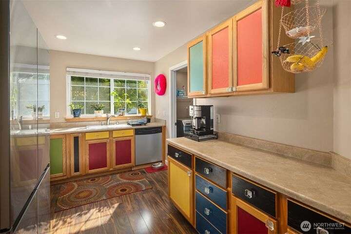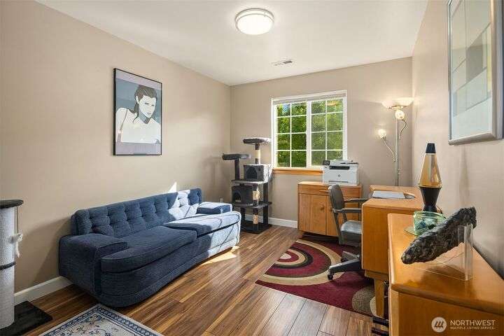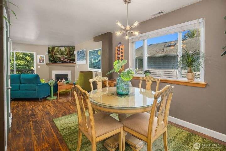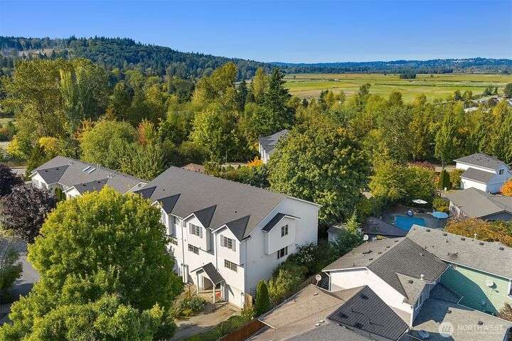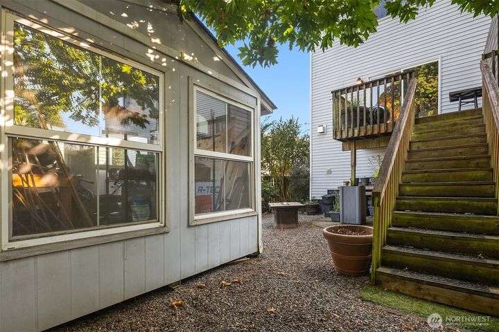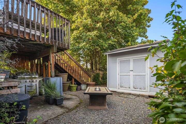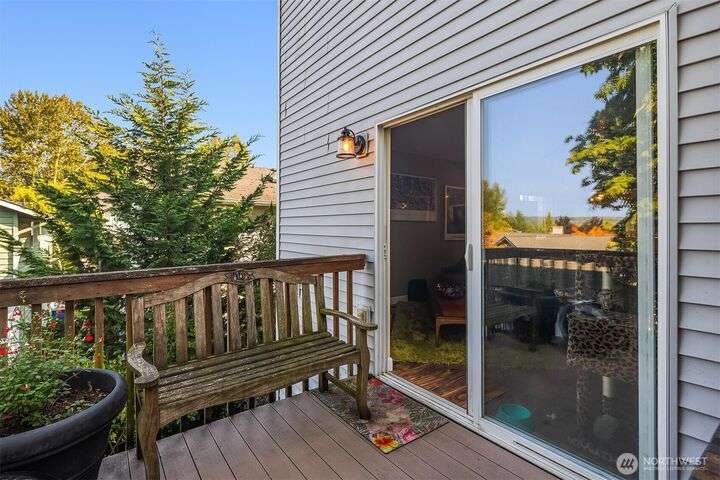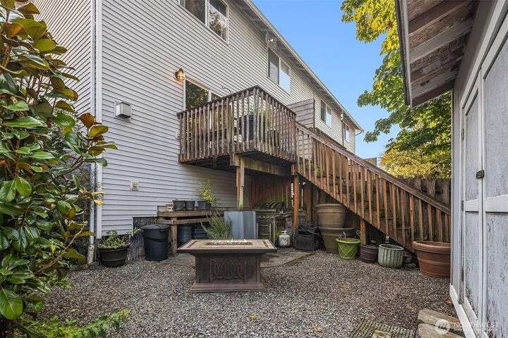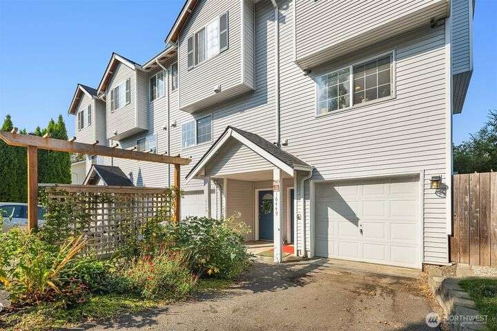 Desirable end-unit townhome w/ fenced yard & rare 591 SF 2-car tandem garage. Main floor features spacious sunny kitchen & pantry area with coffee bar flowing to the open dining and living room areas w/ gas fireplace. Main area also has 1/2 bath & utility room. The raised deck overlooks backyard and the bonus shed/greenhouse. Yard is lushly landscaped, a private oasis to relax. Top floor features the primary suite with attached full bath. Upper floor also features the 2nd & 3rd bedrooms which share a huge full-bath. Roof was just replaced for the entire building. Low HOA dues. All interior doors have been upgraded to solid-core, this home has many custom features. Driveway has additional off-street parking for 2+ cars. Gas forced-air heat.