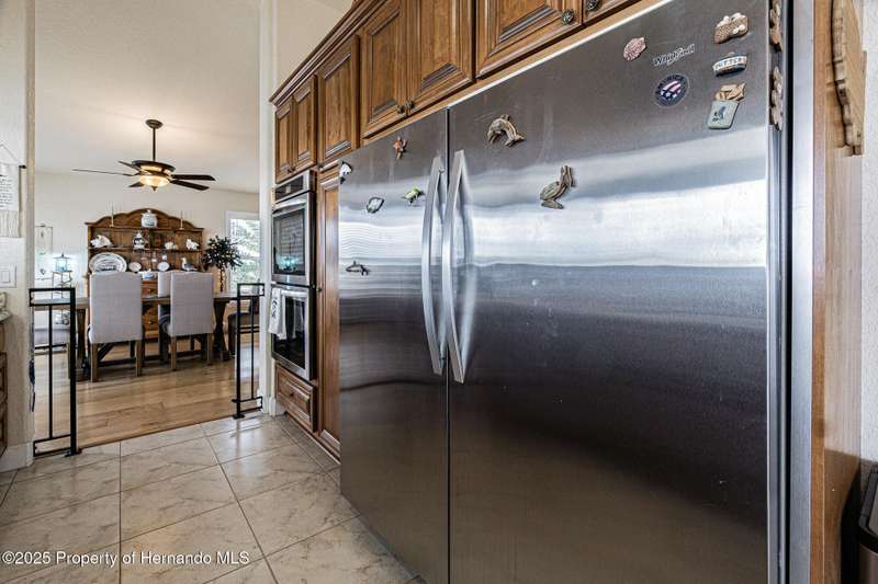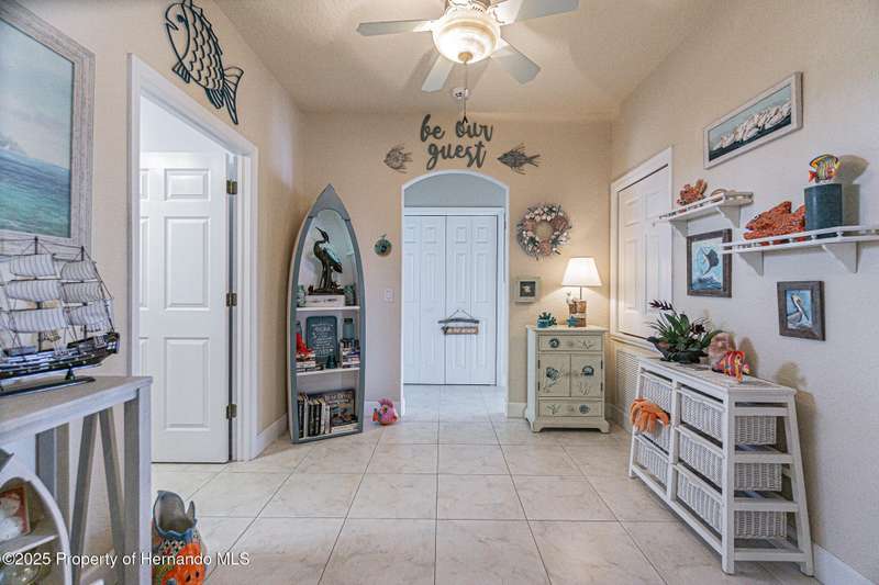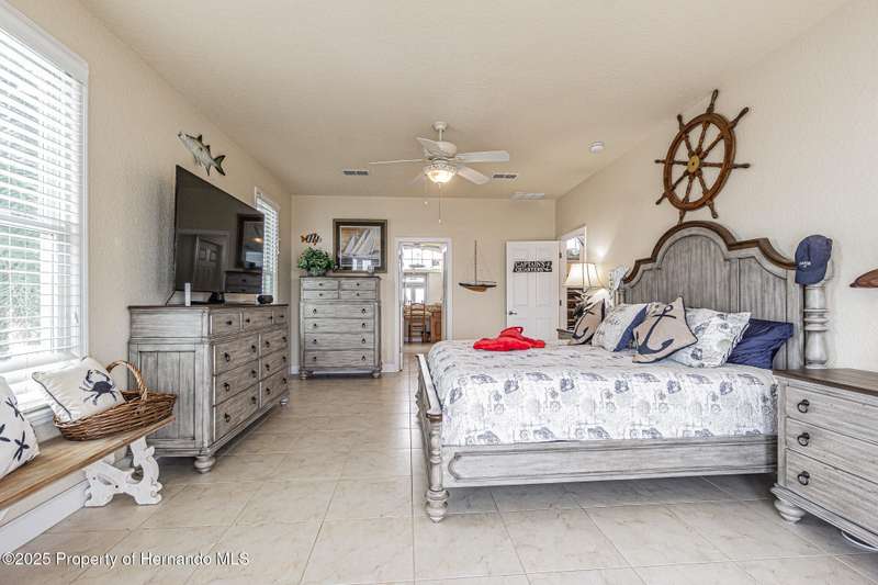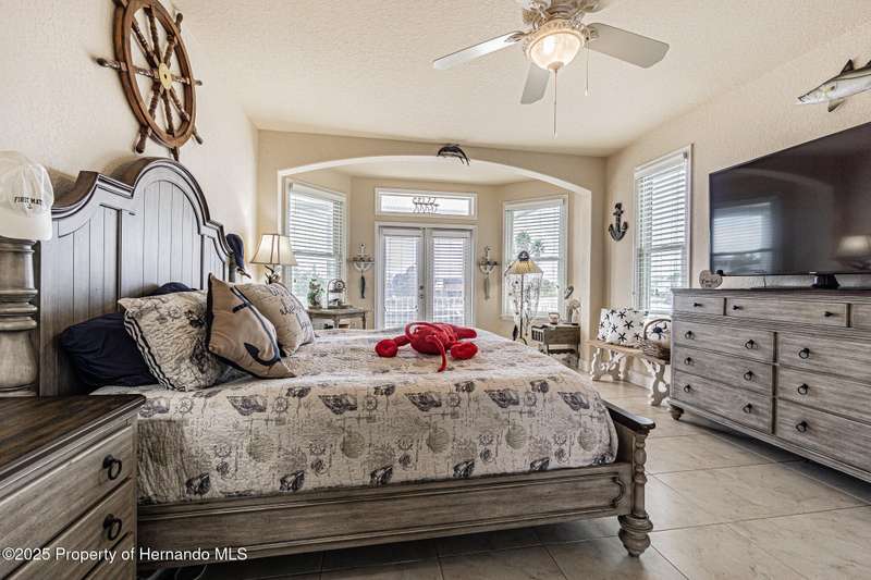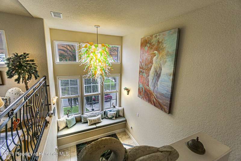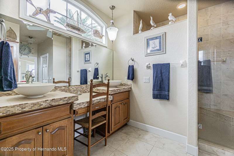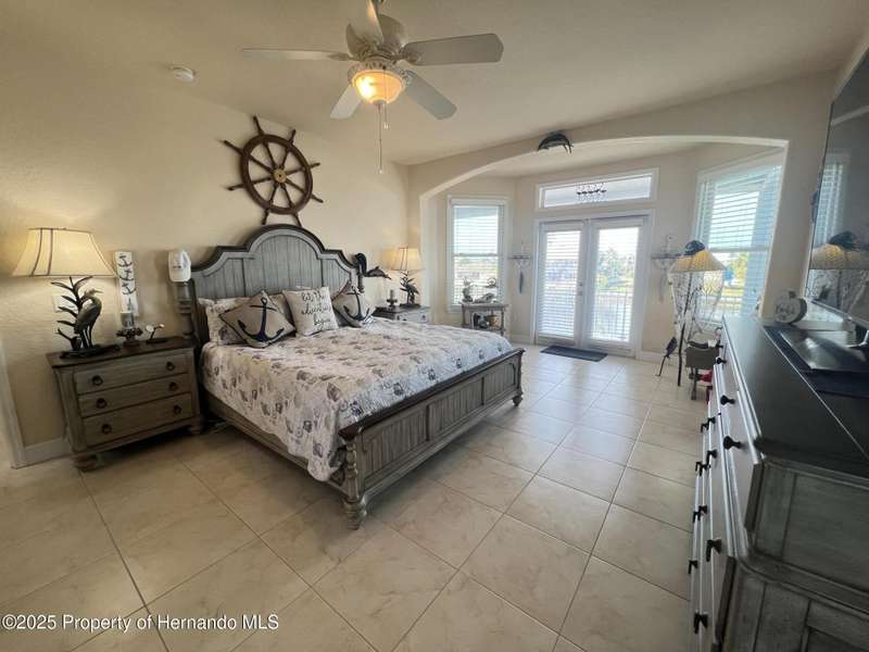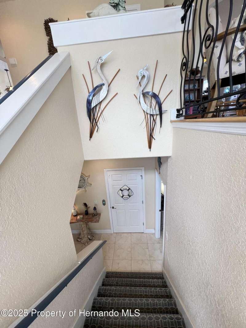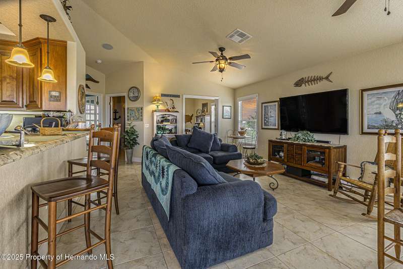 Experience enhanced waterfront living in this custom-built 3,208 sq. ft. residence, completed in 2004. Designed for optimal structural integrity, this three-story, 5-bedroom, 4-bathroom home features primary living spaces on the upper two floors and is strategically positioned on elevated ground behind both a seawall and knee wall at the highest point along the private street and cul-de-sac. Begin each day with coffee on the expansive third-floor deck, offering panoramic views of the gulf and tranquil 25 ft deep Blue Jay Canal, where dolphins are occasionally sighted. The front side of the home provides clear sunrise vistas and unobstructed views of evening space launches from Florida's east coast, visible from the living room, office, and an additional bedroom space. The chef's kitchen caters to culinary pursuits with granite countertops and stainless-steel appliances, including a double oven and a generous 60-inch refrigerator/freezer. Additional amenities comprise a vegetable sink and a walk-in pantry with floor-to-ceiling shelving, ensuring ample storage. A built-in desk area further enhances organization and functionality. A window seat with a showcase Chihuly-style chandelier highlights the landing between the top two floors. The owner's suite includes spacious walk-in closets that provide ample storage and an en-suite bathroom with dual sinks and an expansive walk-in shower. An additional bedroom suite offers a private bath, while two further bedrooms share a full bathroom. The spacious laundry room is outfitted with washer, dryer, utility sink, abundant cabinetry, and counter space. A dedicated interior 4 x 4 elevator serves all three floors, accommodating up to four adults, carts, or furniture. The lower level includes a two-car garage and additional flexible space for custom use that is not included in the square footage. Additional features include dual AC units, solar panels, 2022 roof, coastal windows on lower two floors, epoxy garage floor, ADT security, fenced yard, and irrigation system. Each west-facing bedroom offers direct access to a deck that leads to the pool, bordered by pavers, providing an ideal setting for hosting events and enjoying unforgettable sunset views. Dual ramps connect to the 60-foot floating dock which accommodates pontoons, kayaks, jet skis, paddle boats, and allows sailboat entry to the Gulf. This residence is meticulously designed to showcase a harmonious balance of quality, comfort, and understated luxury, catering to those seeking a Florida lifestyle filled with boating, fishing, and a vibrant community environment! Hernando Beach is a tranquil waterfront community located on Florida's Gulf Coast. The area offers a selection of quality dining establishments and provides convenient access to Spring Hill and Brooksville. Both Tampa and Orlando are easily reachable via major routes, each between one to two hours away by car. See for yourself why this could be the perfect place to drop your anchor and call this coastal paradise home!