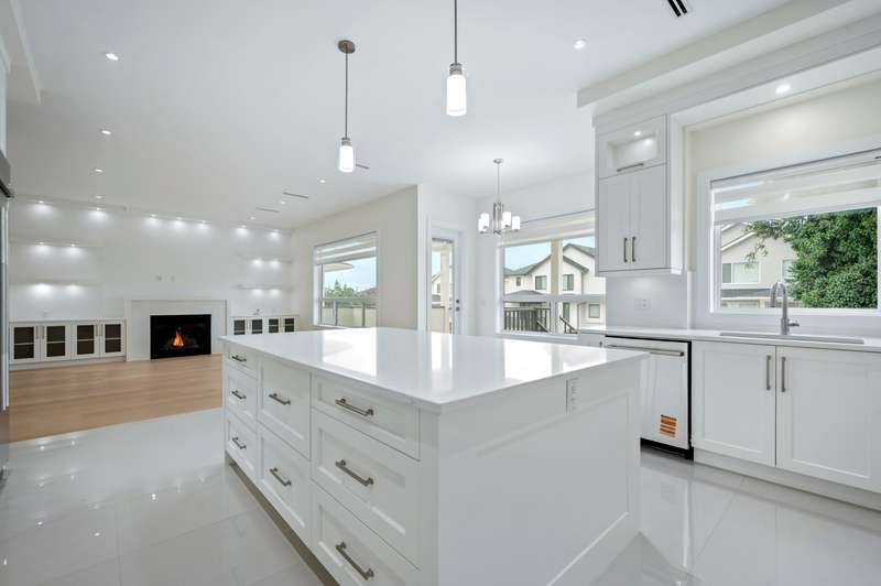 Stunning custom built, 2 level plus basement 6020 square feet (including 420 square feet garage) beautiful home on 7238 square feet lot in new subdivision, quietest street, near both level of Schools, transit and propose Fleetwood Sky train station. Dream kitchen with central island, solid maple cabinets, professional grade Jenn-Air stainless steel appliances, spicy kitchen with gas stove, radiant hot water heat, engineering wood floors, central air condition, variable speed HRV, heat pump, vaulted ceiling in master bedroom, luxury ensuite, 4 bedroom plus lounge area upstairs. LED lights, surveillance cameras, alarm system, fully finished basement with theater room, 2 bedroom legal suite plus more, extra parking on wide driveway and close to all amenities.