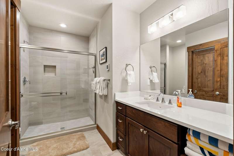 Stunning ground floor condo in Bayside South community delivers the ultimate Dover Bay lifestyle. Newly built in 2021, this impeccably maintained southern facing unit features high-end finishes and upgrades, including quartz counters, LVP flooring, beautiful wood trim and a built-in breakfast bar. A spacious primary suite and second bedroom both access the private back patio with a hot tub and access to the one-car detached garage. An open living area features a gas fireplace, access to the covered front patio facing south towards the Pend Oreille River and a spacious bonus room with french doors that can double as an office, entertainment space or additional living. Soak up the vacation lifestyle with close access to all Dover Bay's amenities, including the marina, pool, gym, community beach and miles of trails. Three miles biking or driving distance to Sandpoint, and just over 30 minutes to the top of Schweitzer Mountain. Rentable by the night.