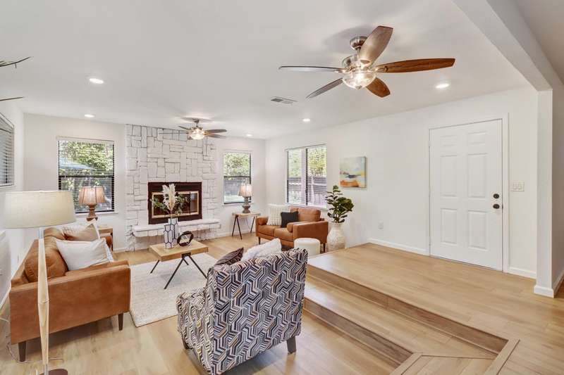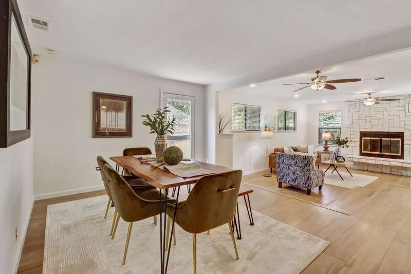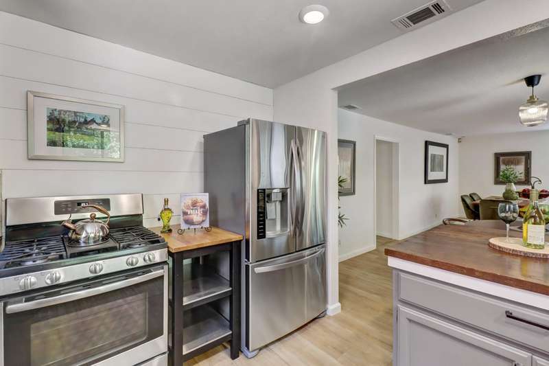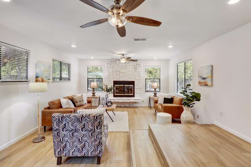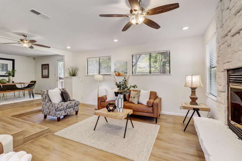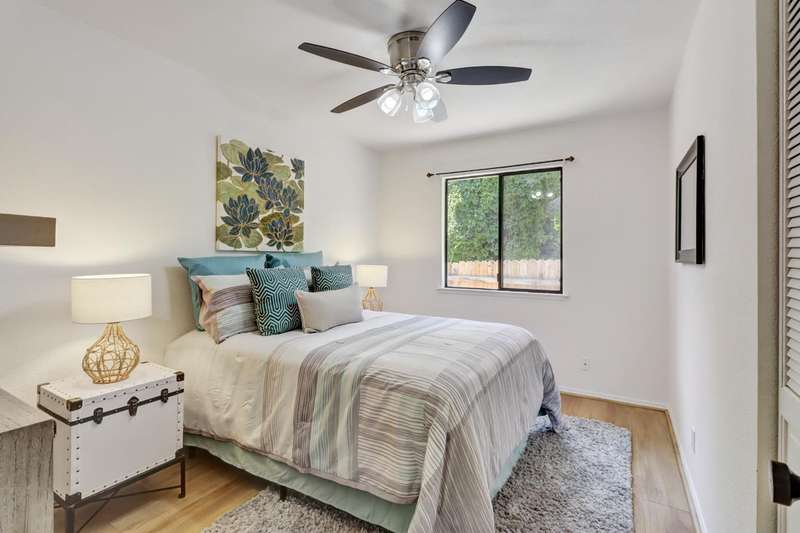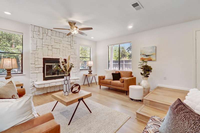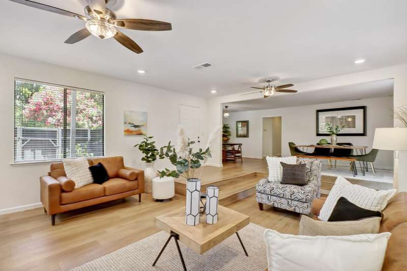 New roof and updated HVAC, with permits, for lower future costs. Private courtyard and multiple patios for outdoor living. EV charger and four private parking spaces. Walk to Glancy Oaks Park; minutes to the American River. Back on the market at no fault of the seller. Well-maintained Carmichael home with updates in a quiet setting. Improvements include a new roof, updated HVAC, an updated main plumbing line, energy-efficient appliances, fresh interior paint, and new fencing. Fully fenced front courtyard with new pavers and crepe myrtles; side garden with beds and bark for easy planting. The bright step-down living room flows to dining and kitchen spaces. The kitchen has a small-to-medium layout with modern appliances, abundant storage, and natural light. The main bedroom includes a walk-in closet and ensuite with a window for ventilation. All bedrooms have ceiling fans; the second bath offers dual sinks. Shared dual-lane driveway with rear neighbor only, supported by a long-standing recorded easement and no reported issues during seller's ownership. Parking includes a two-car garage plus two private spaces beside it. Close to parks, river access, and nearby shopping, including Raley's and Whole Foods. Motivated seller, bring us your offer!