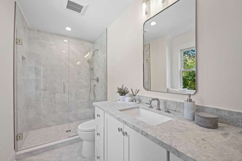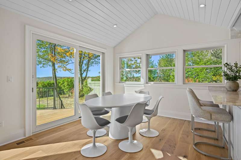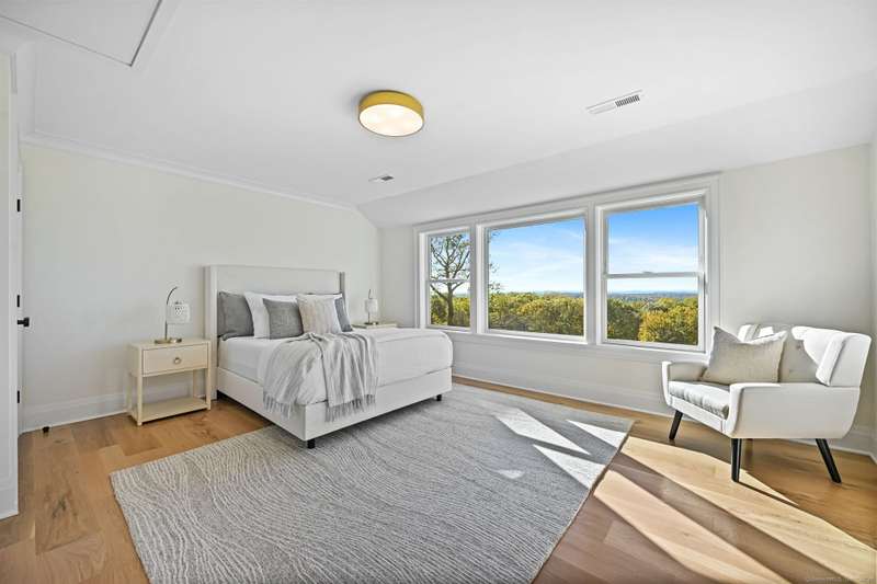 A masterclass in modern luxury, this breathtaking Ridgefield estate has been meticulously reimagined by premier builder Thomas Sturges Construction, achieving a rare balance of architectural brilliance, refined comfort, and energy efficiency, all set against awe-inspiring panoramic 50-mile views of the Hudson River Valley. Completely transformed, the residence unveils a sophisticated open-concept design where wide-plank oak floors, walls of glass and impeccable craftsmanship define every space. The chef's kitchen is a showpiece of form and function with natural stone counters, custom cabinetry and professional-grade Viking appliances seamlessly flowing into a chic dining area and luminous living room anchored by a sleek gas fireplace. The main-level primary suite is a private sanctuary, offering dual walk-in closets and a spa bath worthy of a five-star retreat. Upstairs, two additional ensuite bedrooms showcase exquisite finishes and elevated comfort. The lower level extends the living experience with a full in-law or au pair suite, complete with separate entrance, laundry and a stunning family room framed by stone-accented walls. Outdoor living is redefined with tiered decks, a granite patio, Wagner pool and spa and a romantic gazebo set amid manicured grounds. Great NYC commute. Perfectly sited minutes from Ridgefield's boutique shops, acclaimed dining and cultural attractions. An exceptional residence embodying the pinnacle of modern elegance and timeless craftsmanship!