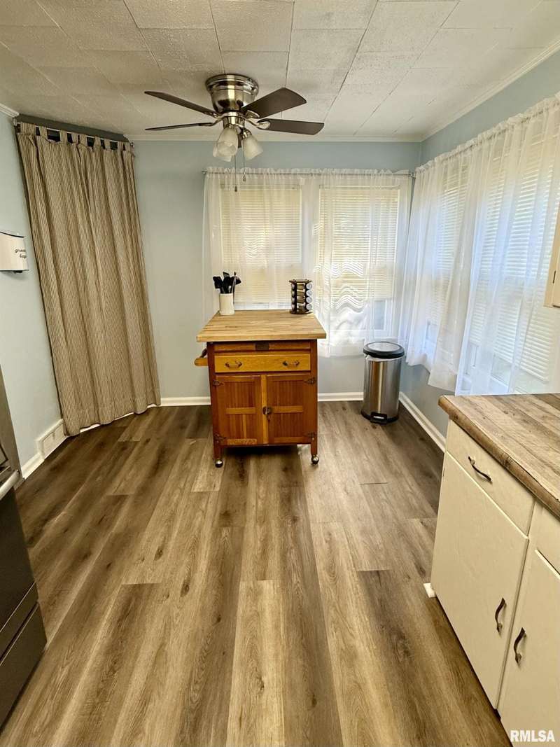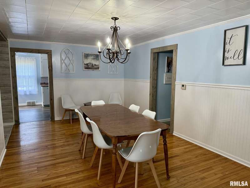 This 3 bedroom home is located on the edge of town & is in the Wethersfield school district. The back covered patio overlooks the huge yard, perfect for outdoor entertaining or peaceful relaxation! There is an attached 2-car tandem garage w/workshop. Main floor features: Eat-in kitchen w/white cabinets & all appliances stay but not warranted, large dining room which is great for those family gatherings & flows seamlessly into the spacious living room! Beautiful white corner fireplace serves as a focal point for the living room, creating a cozy & welcoming atmosphere! The primary bedroom has an attached sitting room, that is currently being used as a bedroom. There are 2 additional bedrooms & bath on this floor. The lower level has a family room, which is currently being used for the seller's business, laundry, office area & another bath. This home has been completely updated & is ready for the new owners!