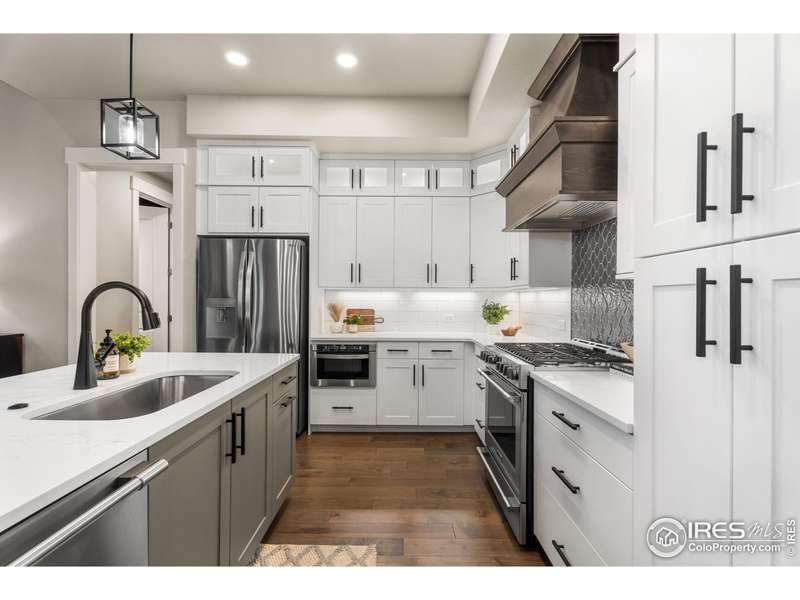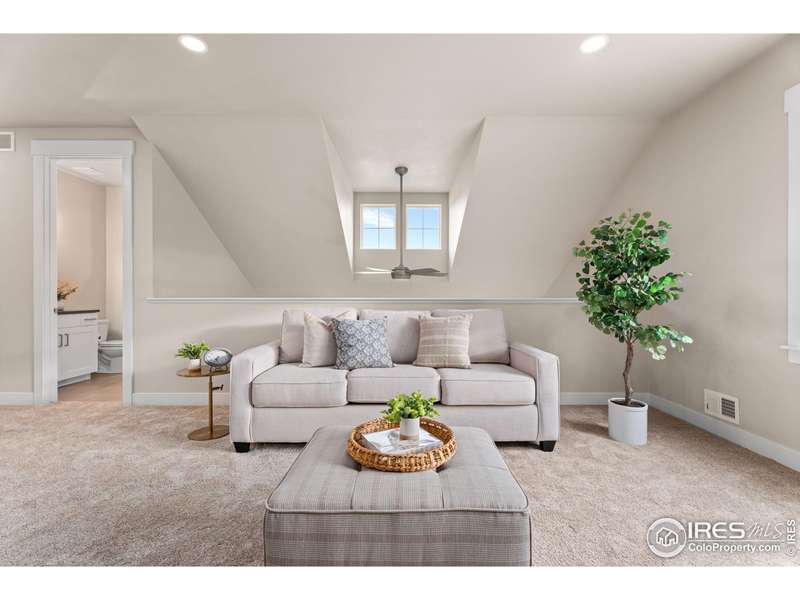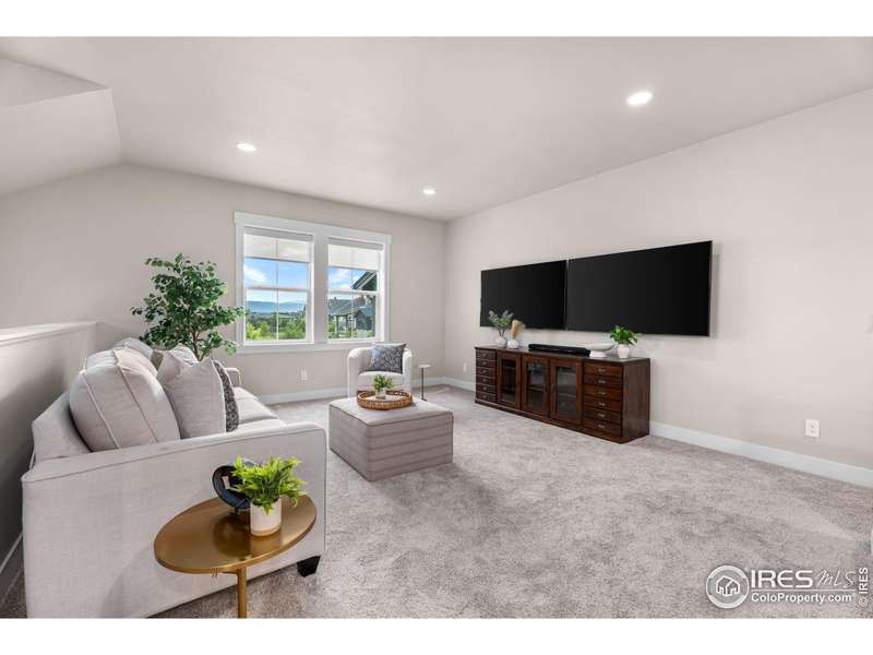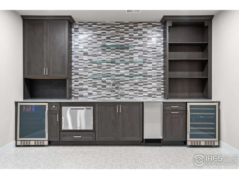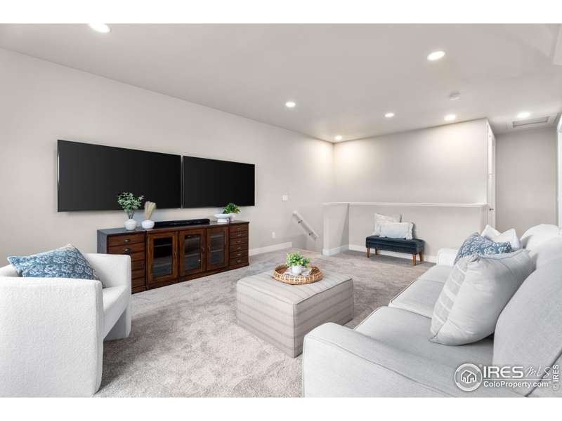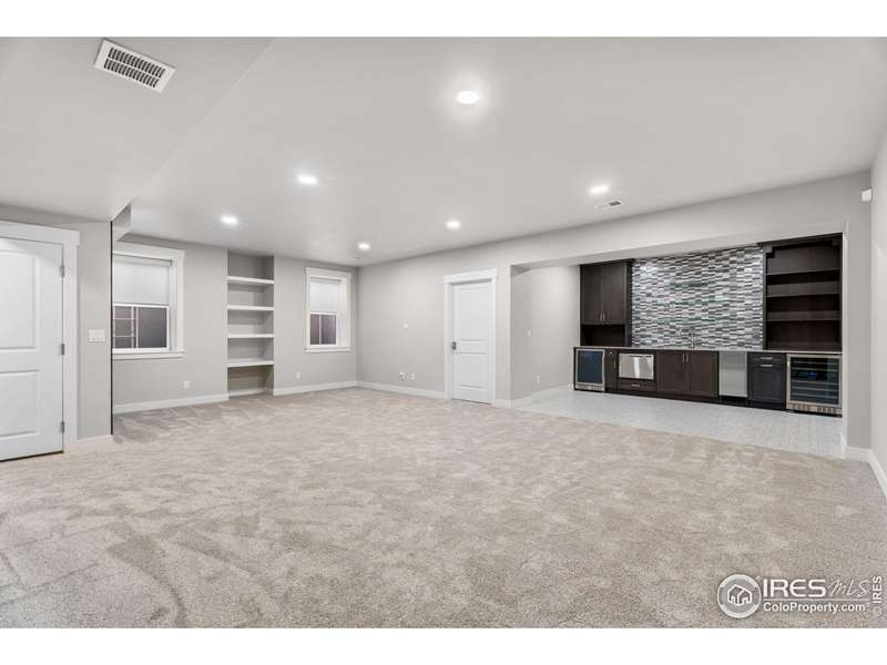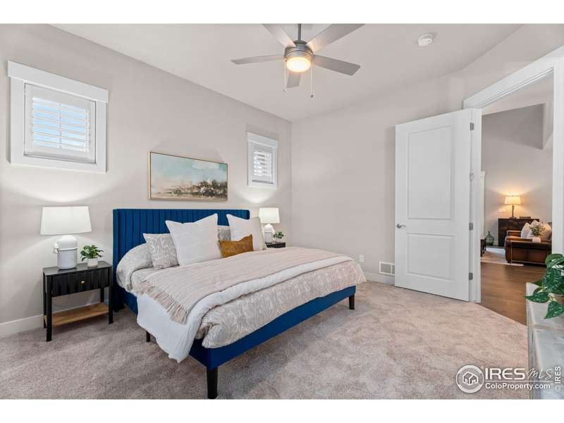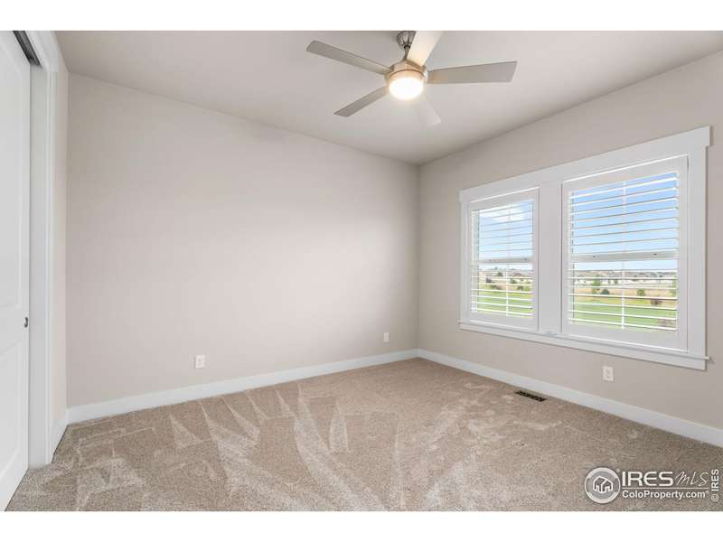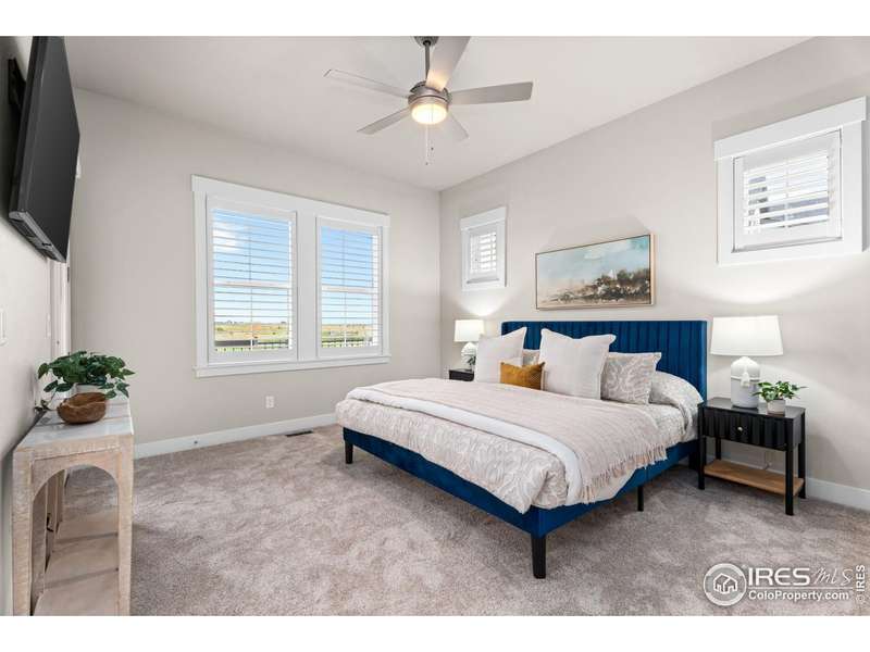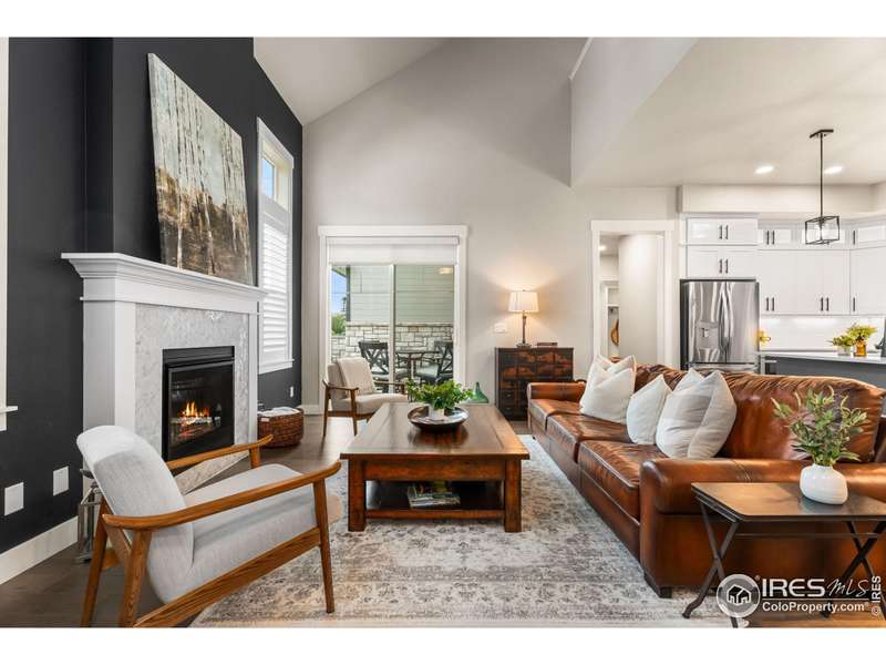 Looking to make your home in a fabulous resort like community - Harmony Club is waiting for you. Now you can own this immaculate two story with main floor primary suite nestled on the golf course and offering gorgeous Rocky Mountain views. With over 3000 sqft of finished living space, this bright and open floorplan lives like a luxury home without the hassle of yard work and exterior maintenance. Featuring an oversized garage with 3rd bay with 6ft wide and 8ft tall garage door, custom flooring and included cabinetry, bring your toys or golf cart and let the games begin. Loaded with upgraded features including soaring ceilings, cozy gas fireplace, chef's kitchen with custom white lighted cabinetry to the ceiling, quartz countertops, custom hood, large island with extra storage and an ample dining room. Round out the first floor with a luxurious primary retreat with private patio access, spa bath and generous closet, convenient mud room with built-in and a main floor laundry room. Upstairs enjoy a huge loft offering stunning views to use as your study or a place to relax the day away, plus two additional bedrooms with golf course views and a full bath. The basement features a huge rec room plus 14X9 wet bar area offering two beverage refrigerators and a drawer dishwasher plus a beautiful wine storage room with custom wine racks and a glass door. You'll also find the 4th bedroom, full bath and two storage areas. Perfectly placed on a corner lot offering additional privacy and a sunny driveway, this townhome stands out amongst the rest. You'll enjoy a private dining patio, lower patio with stone firepit and a back deck to take in the action on the course. You're not only buying a home your entering a community full of activites including summer concerts, gym membership, full service restaurant, pool and hot tub with poolside service, pavilion, walking trails and of course golf.